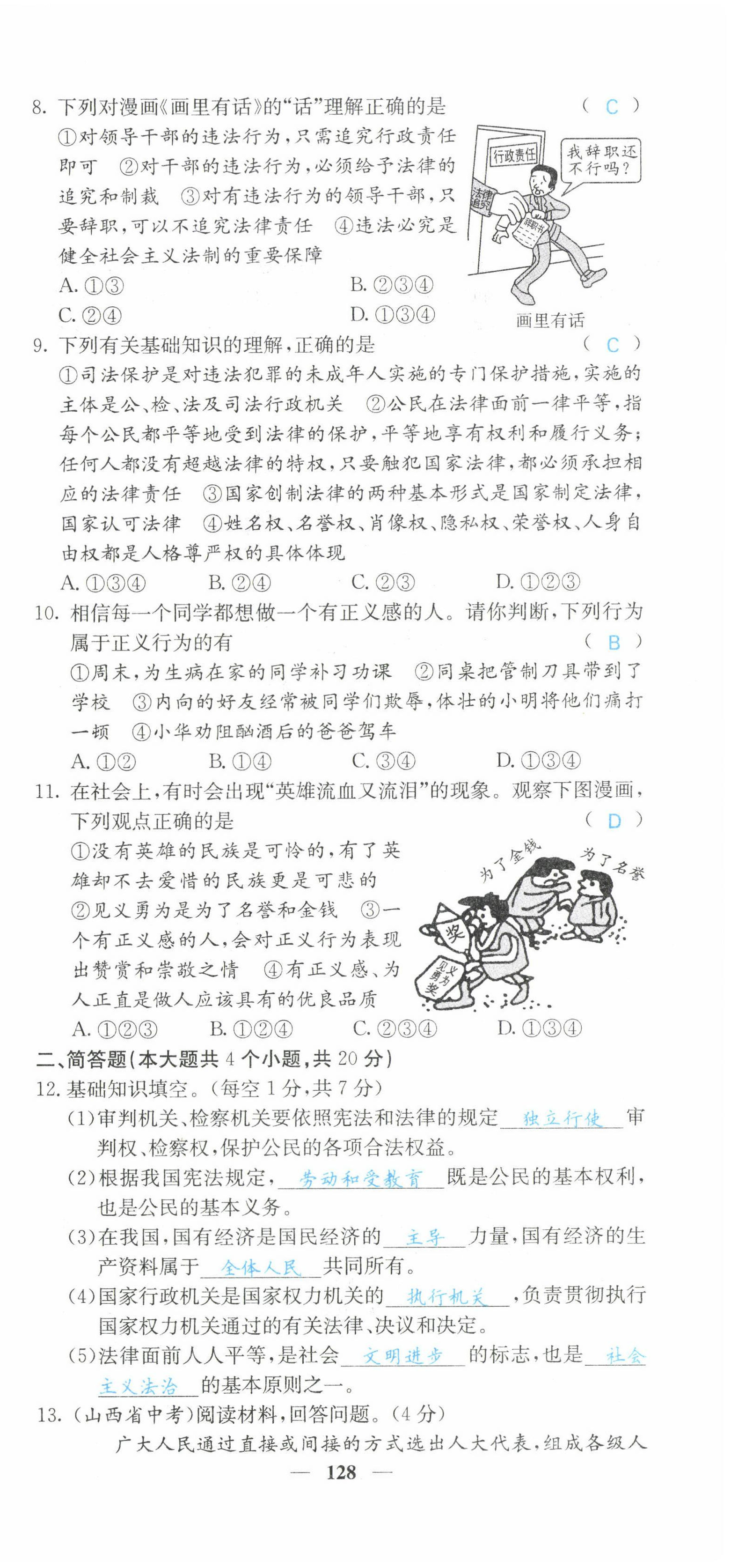 注:目前有些书本章节名称可能整理的还不是很完善,但都是按照顺序排列的,请同学们按照顺序仔细查找。练习册 2022年课堂点睛八年级道德与法治下册人教版山西专版 答案主要是用来给同学们做完题方便对答案用的,请勿直接抄袭。