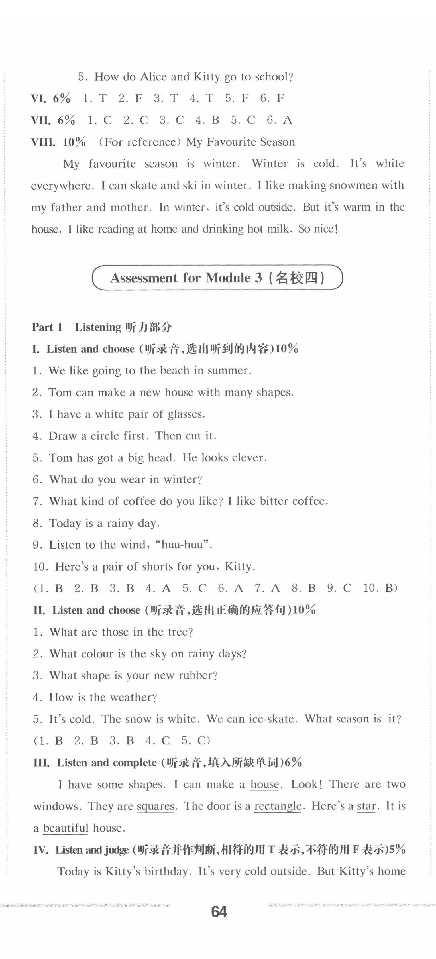注:目前有些书本章节名称可能整理的还不是很完善,但都是按照顺序排列的,请同学们按照顺序仔细查找。练习册 2022年上海名校名卷三年级英语第二学期沪教版五四制 答案主要是用来给同学们做完题方便对答案用的,请勿直接抄袭。