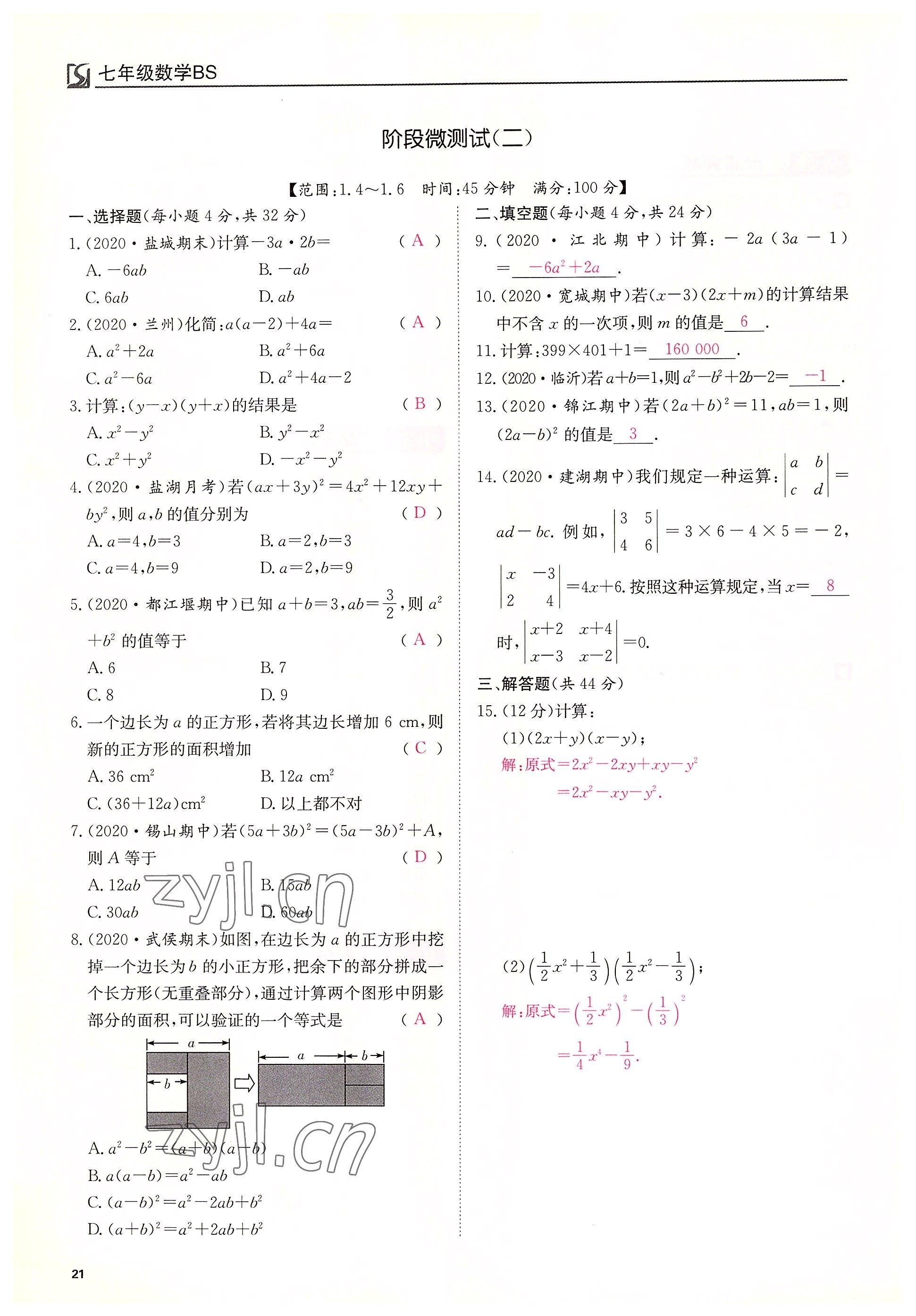 注:目前有些书本章节名称可能整理的还不是很完善,但都是按照顺序排列的,请同学们按照顺序仔细查找。练习册 2022年我的作业七年级数学下册北师大版 答案主要是用来给同学们做完题方便对答案用的,请勿直接抄袭。