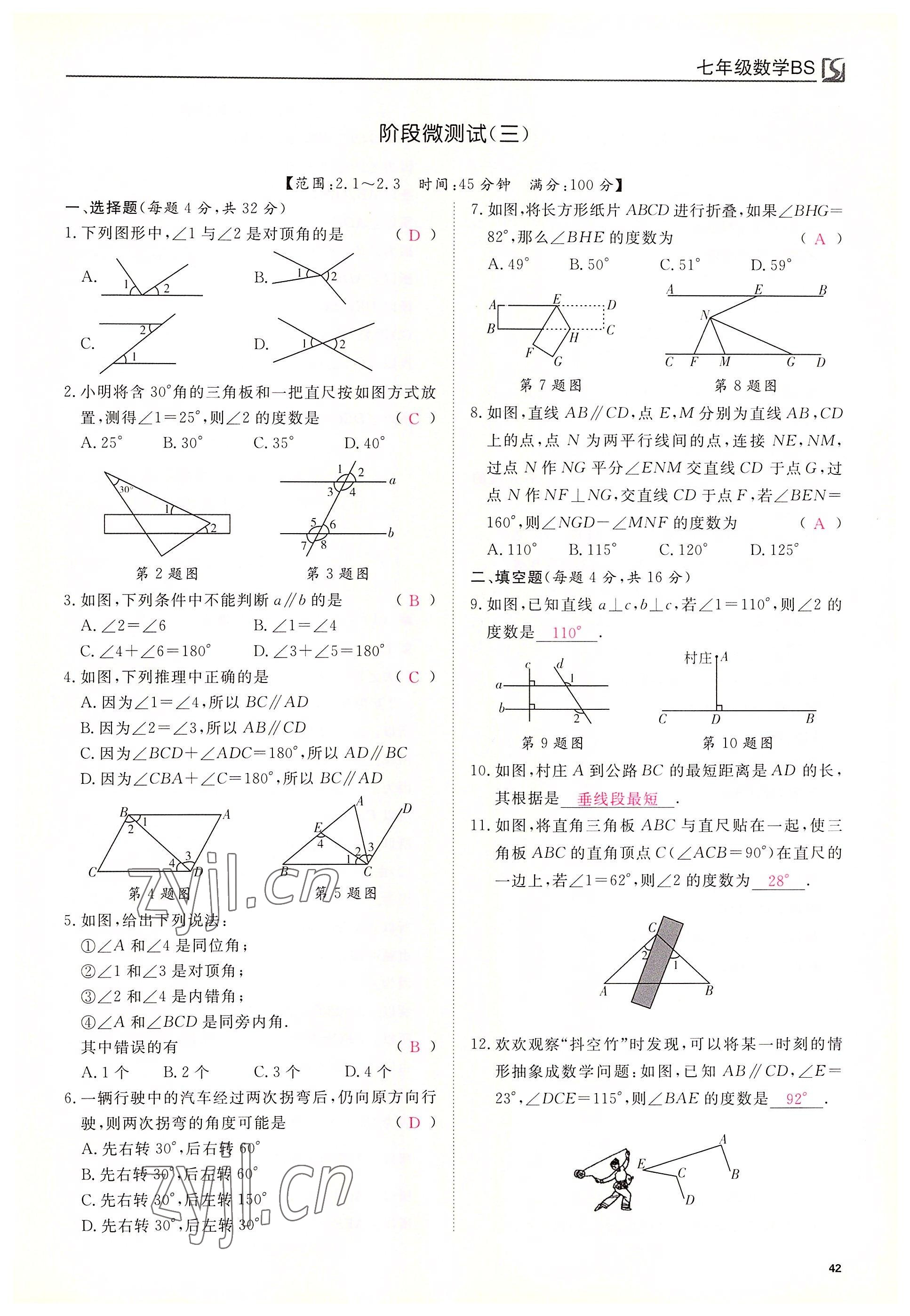 注:目前有些书本章节名称可能整理的还不是很完善,但都是按照顺序排列的,请同学们按照顺序仔细查找。练习册 2022年我的作业七年级数学下册北师大版 答案主要是用来给同学们做完题方便对答案用的,请勿直接抄袭。
