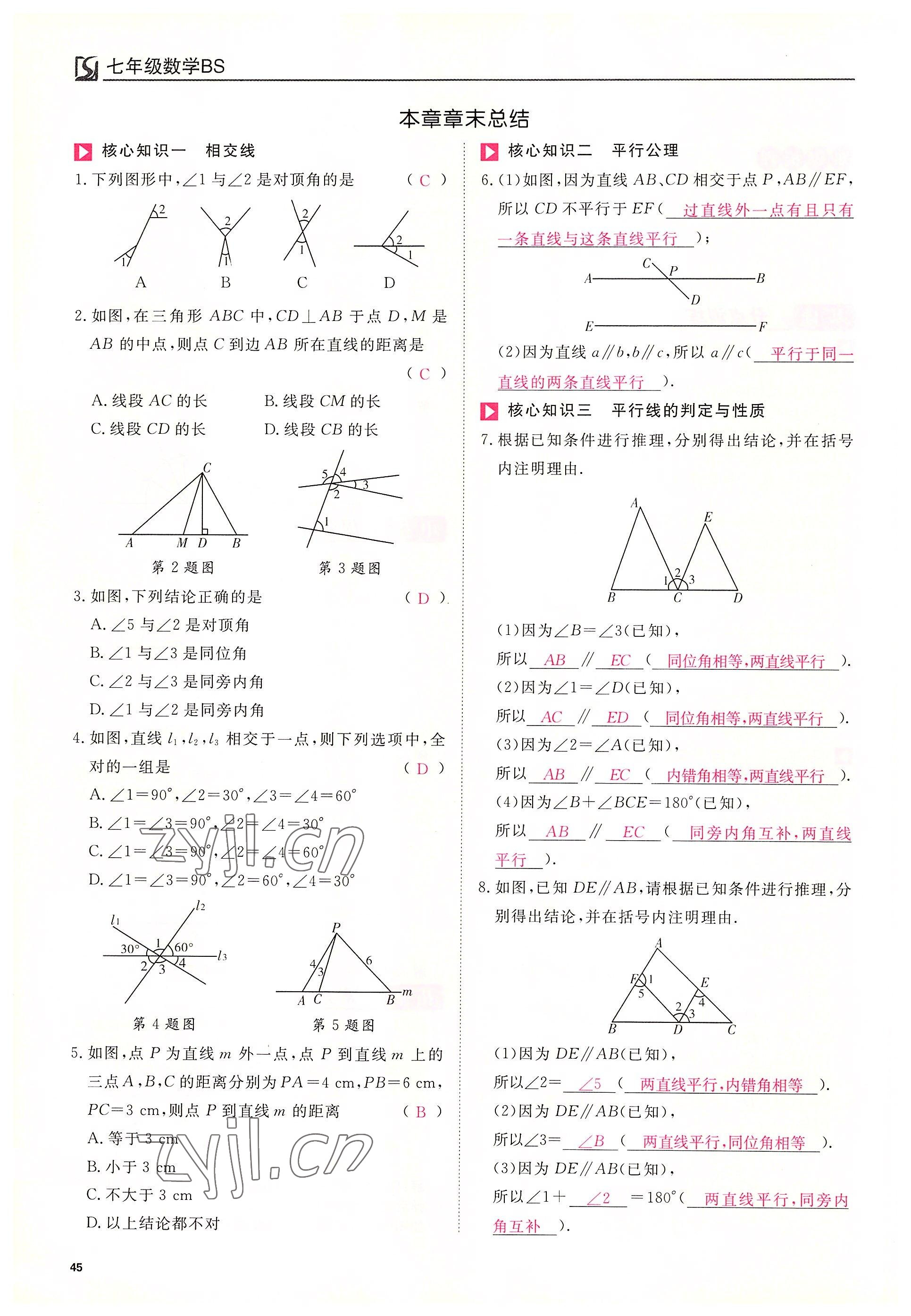 注:目前有些书本章节名称可能整理的还不是很完善,但都是按照顺序排列的,请同学们按照顺序仔细查找。练习册 2022年我的作业七年级数学下册北师大版 答案主要是用来给同学们做完题方便对答案用的,请勿直接抄袭。