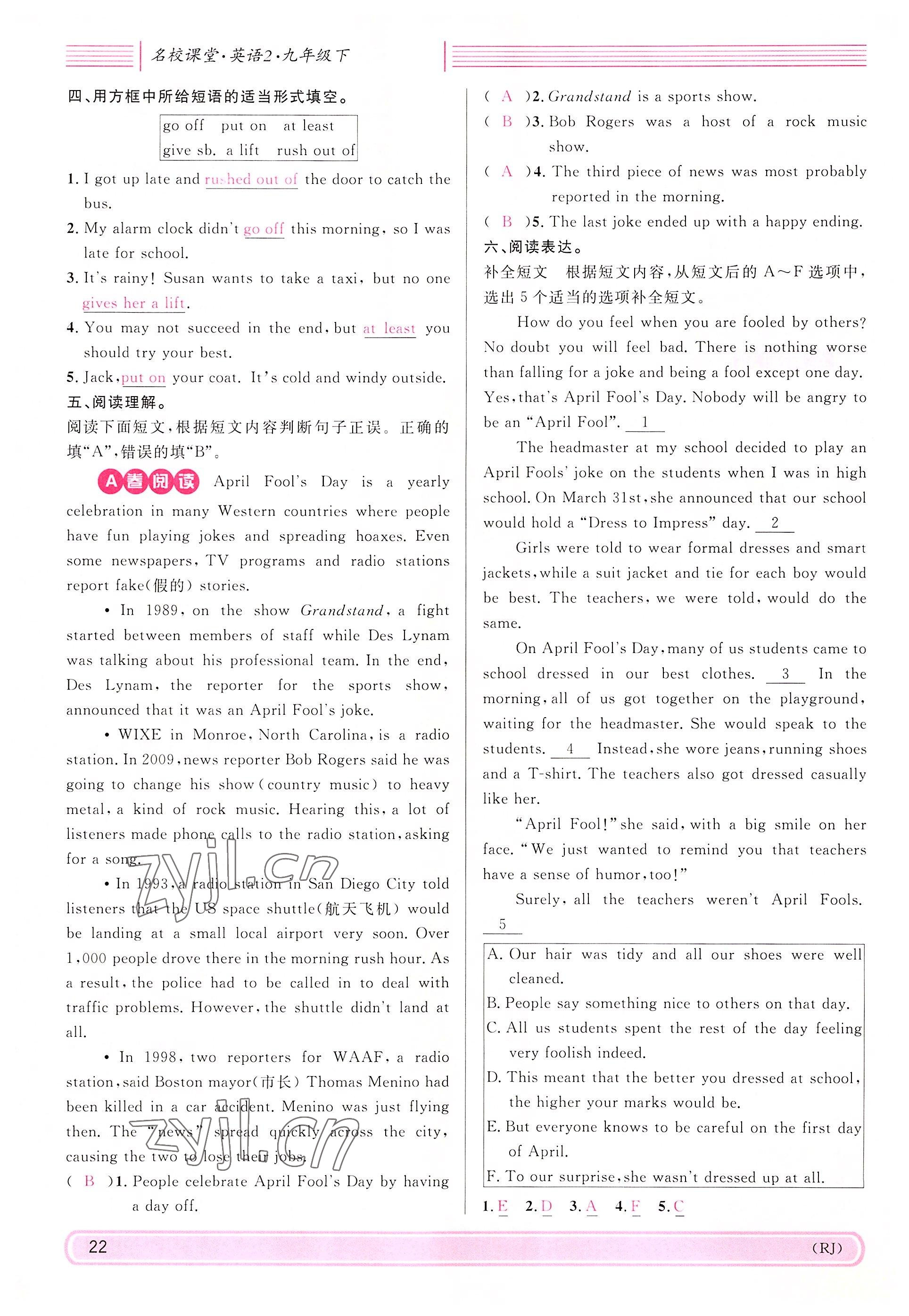 注:目前有些书本章节名称可能整理的还不是很完善,但都是按照顺序排列的,请同学们按照顺序仔细查找。练习册 2022年蓉城名校课堂九年级英语下册人教版 答案主要是用来给同学们做完题方便对答案用的,请勿直接抄袭。
