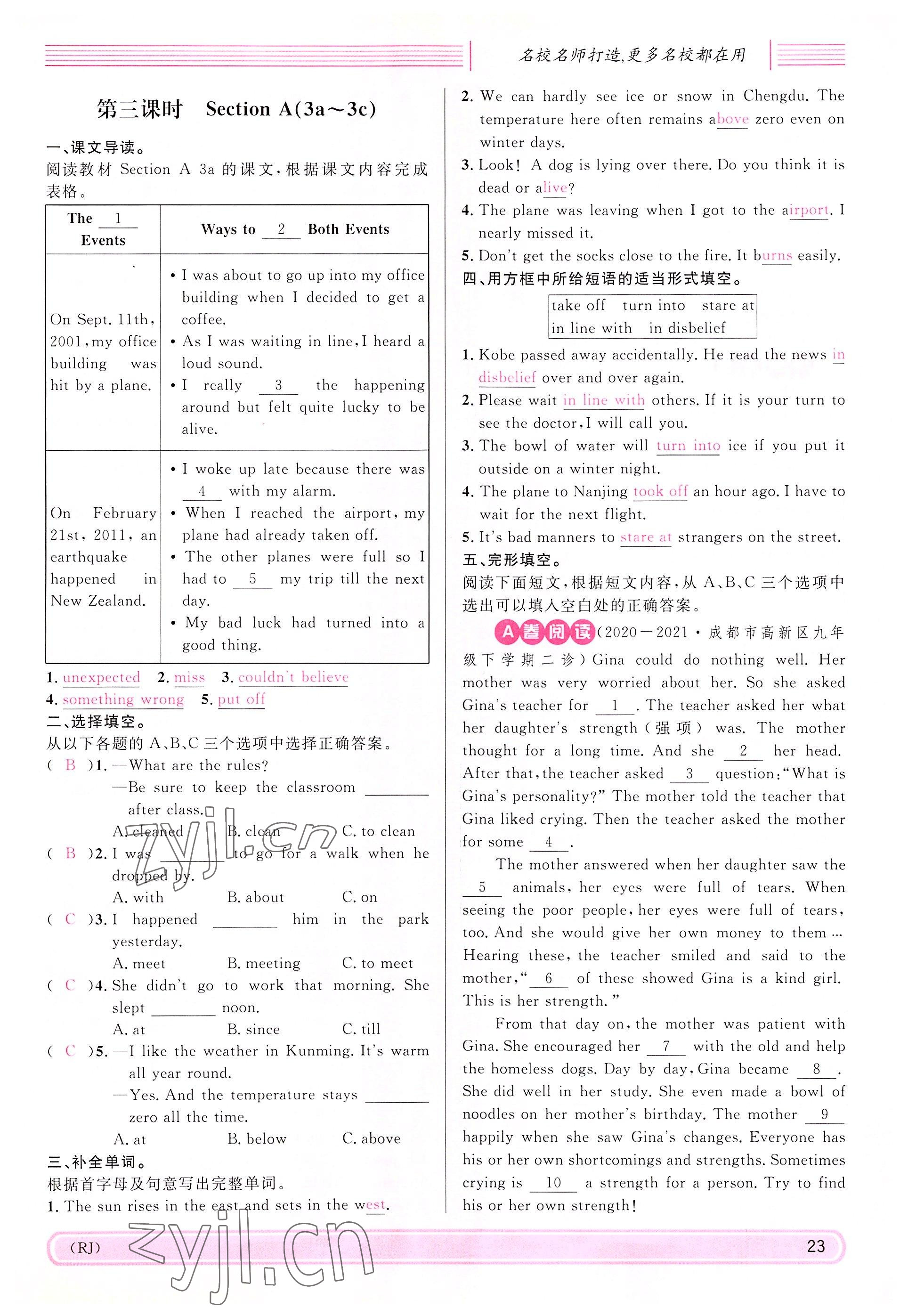 注:目前有些书本章节名称可能整理的还不是很完善,但都是按照顺序排列的,请同学们按照顺序仔细查找。练习册 2022年蓉城名校课堂九年级英语下册人教版 答案主要是用来给同学们做完题方便对答案用的,请勿直接抄袭。