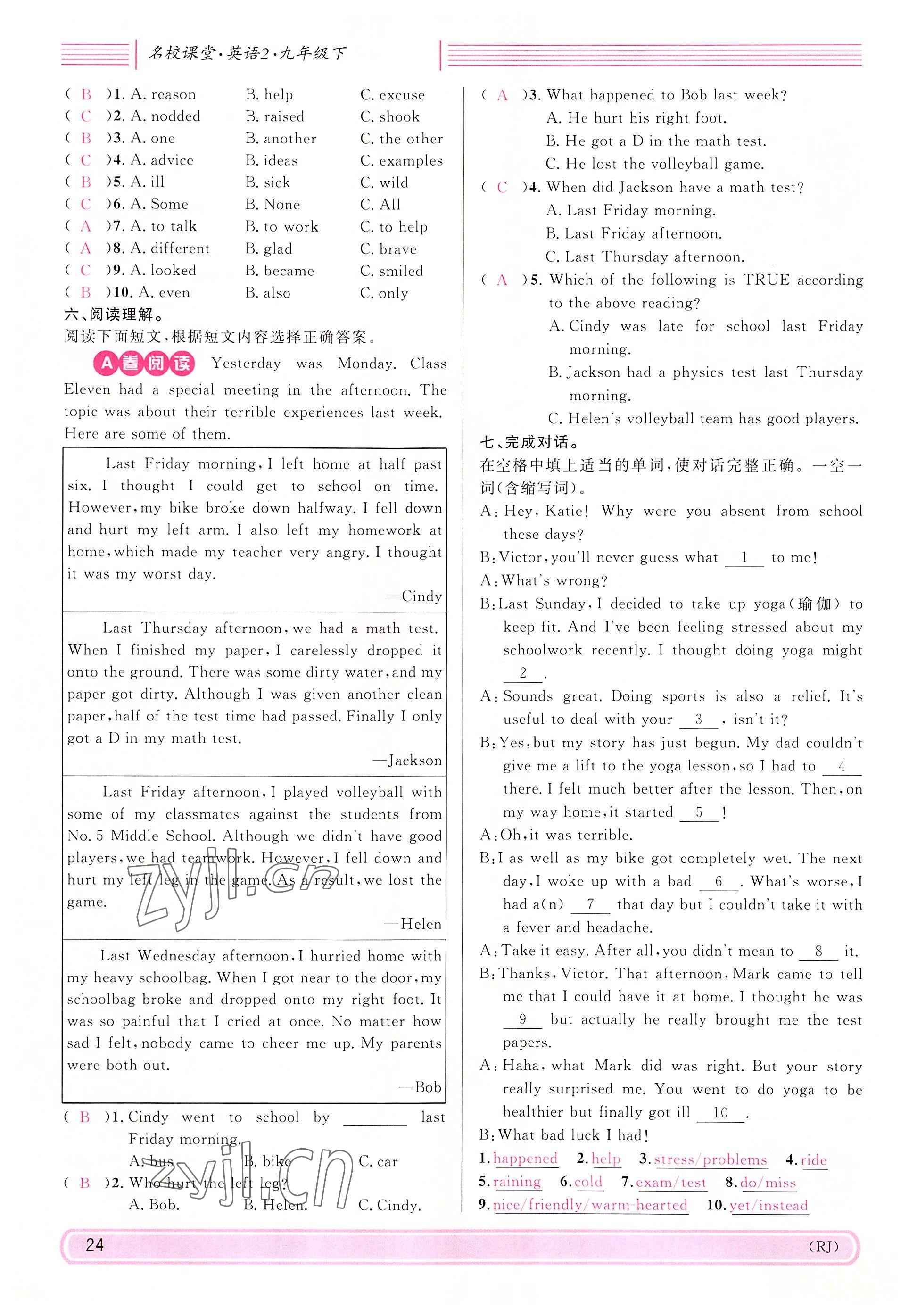 注:目前有些书本章节名称可能整理的还不是很完善,但都是按照顺序排列的,请同学们按照顺序仔细查找。练习册 2022年蓉城名校课堂九年级英语下册人教版 答案主要是用来给同学们做完题方便对答案用的,请勿直接抄袭。