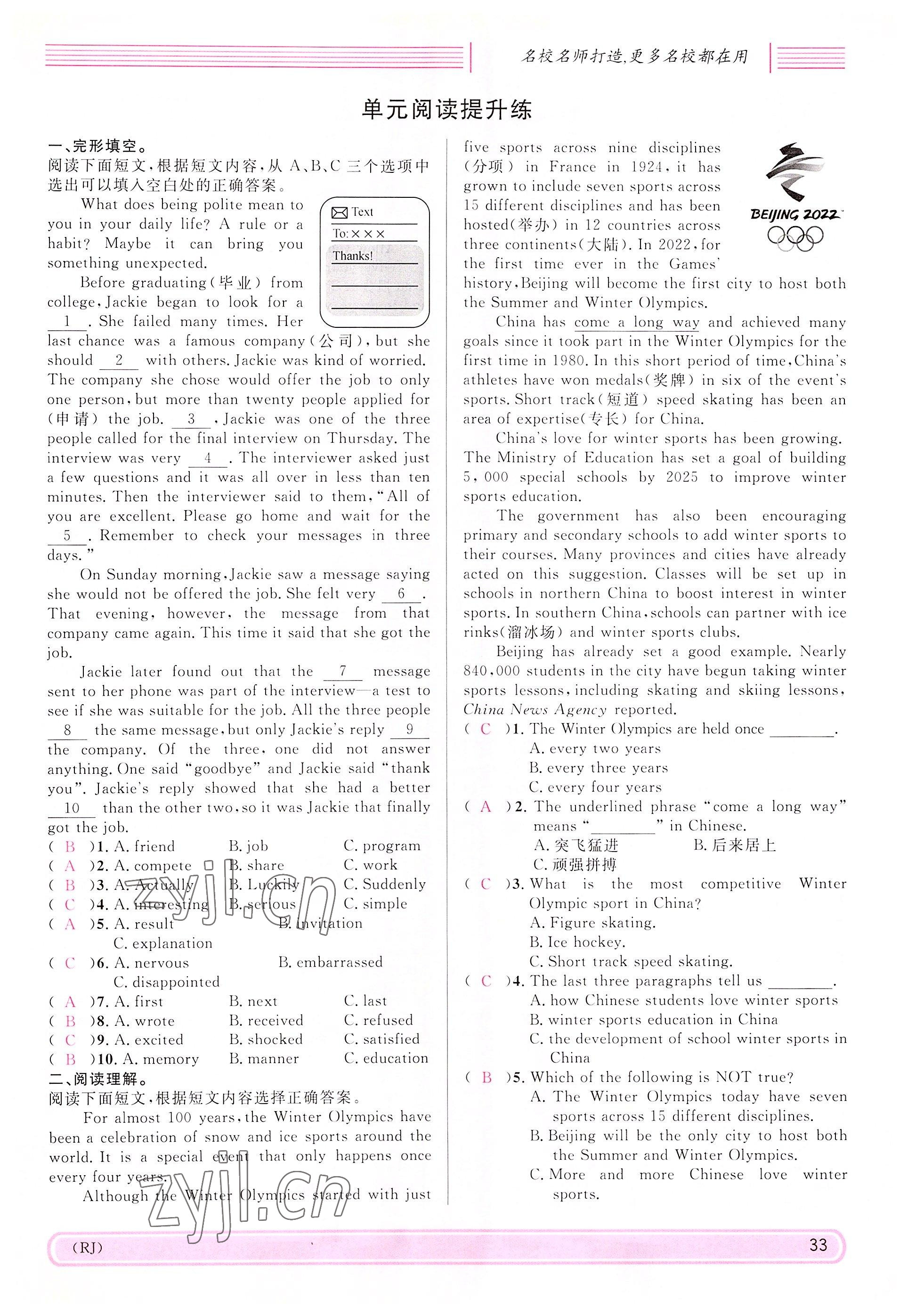 注:目前有些书本章节名称可能整理的还不是很完善,但都是按照顺序排列的,请同学们按照顺序仔细查找。练习册 2022年蓉城名校课堂九年级英语下册人教版 答案主要是用来给同学们做完题方便对答案用的,请勿直接抄袭。