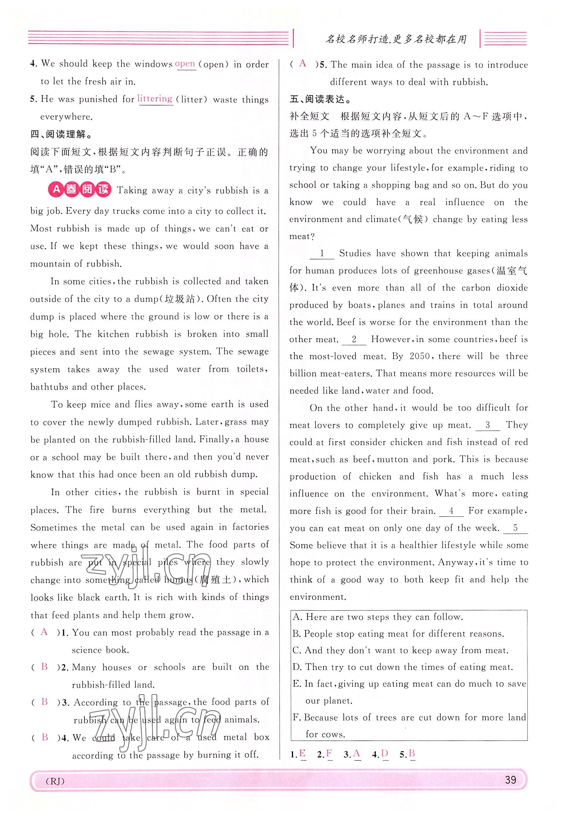 注:目前有些书本章节名称可能整理的还不是很完善,但都是按照顺序排列的,请同学们按照顺序仔细查找。练习册 2022年蓉城名校课堂九年级英语下册人教版 答案主要是用来给同学们做完题方便对答案用的,请勿直接抄袭。