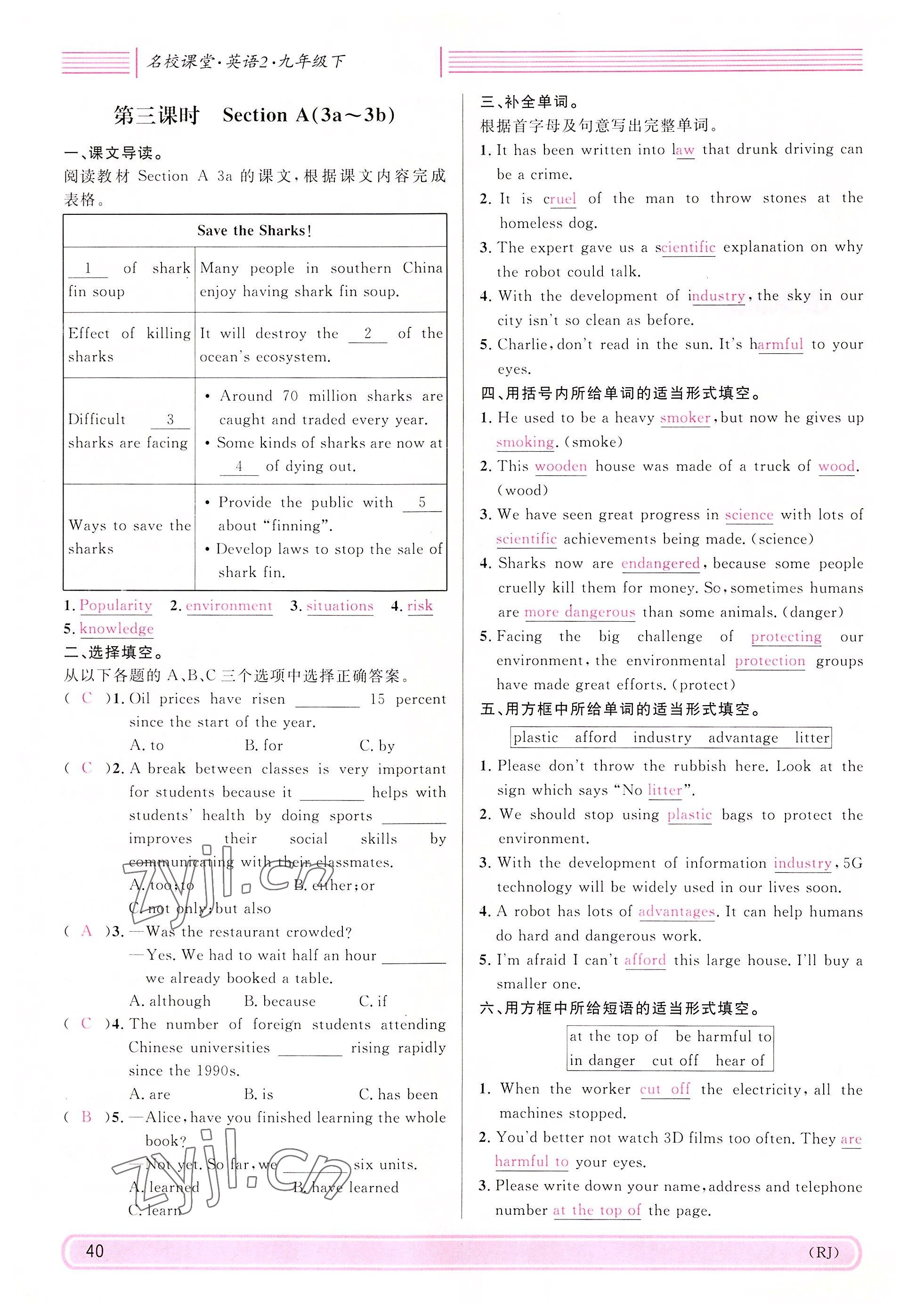 注:目前有些书本章节名称可能整理的还不是很完善,但都是按照顺序排列的,请同学们按照顺序仔细查找。练习册 2022年蓉城名校课堂九年级英语下册人教版 答案主要是用来给同学们做完题方便对答案用的,请勿直接抄袭。