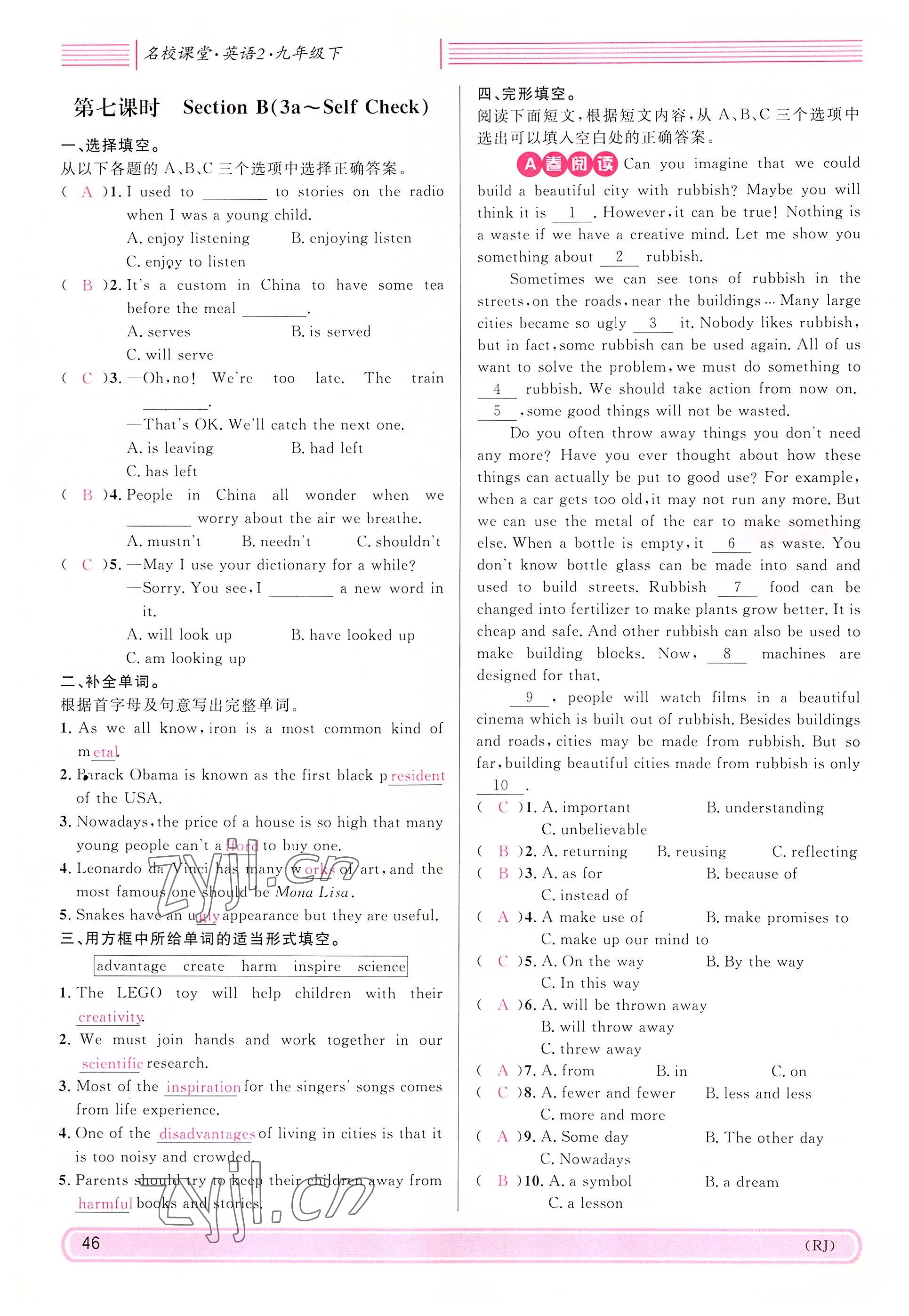 注:目前有些书本章节名称可能整理的还不是很完善,但都是按照顺序排列的,请同学们按照顺序仔细查找。练习册 2022年蓉城名校课堂九年级英语下册人教版 答案主要是用来给同学们做完题方便对答案用的,请勿直接抄袭。