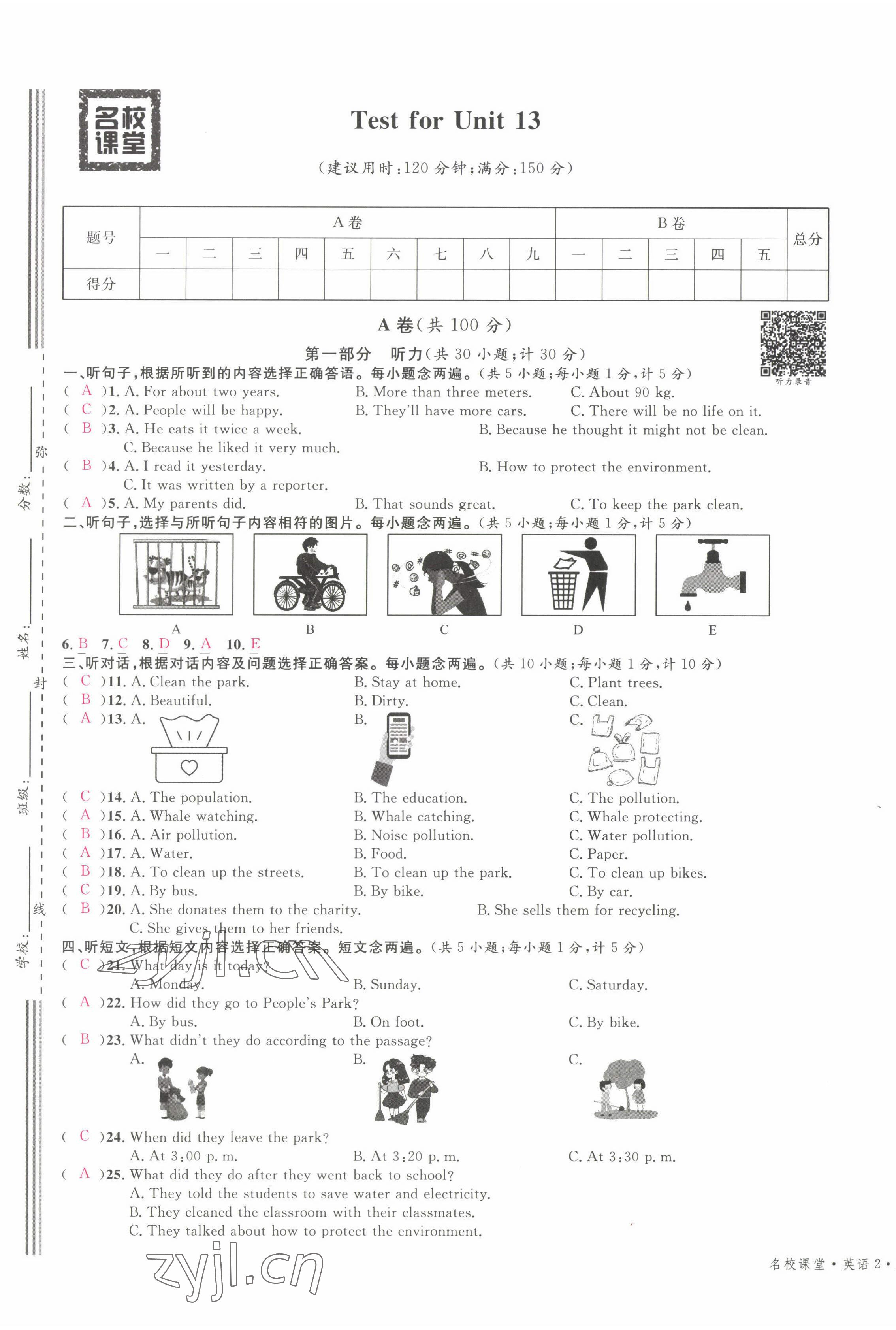 注:目前有些书本章节名称可能整理的还不是很完善,但都是按照顺序排列的,请同学们按照顺序仔细查找。练习册 2022年蓉城名校课堂九年级英语下册人教版 答案主要是用来给同学们做完题方便对答案用的,请勿直接抄袭。