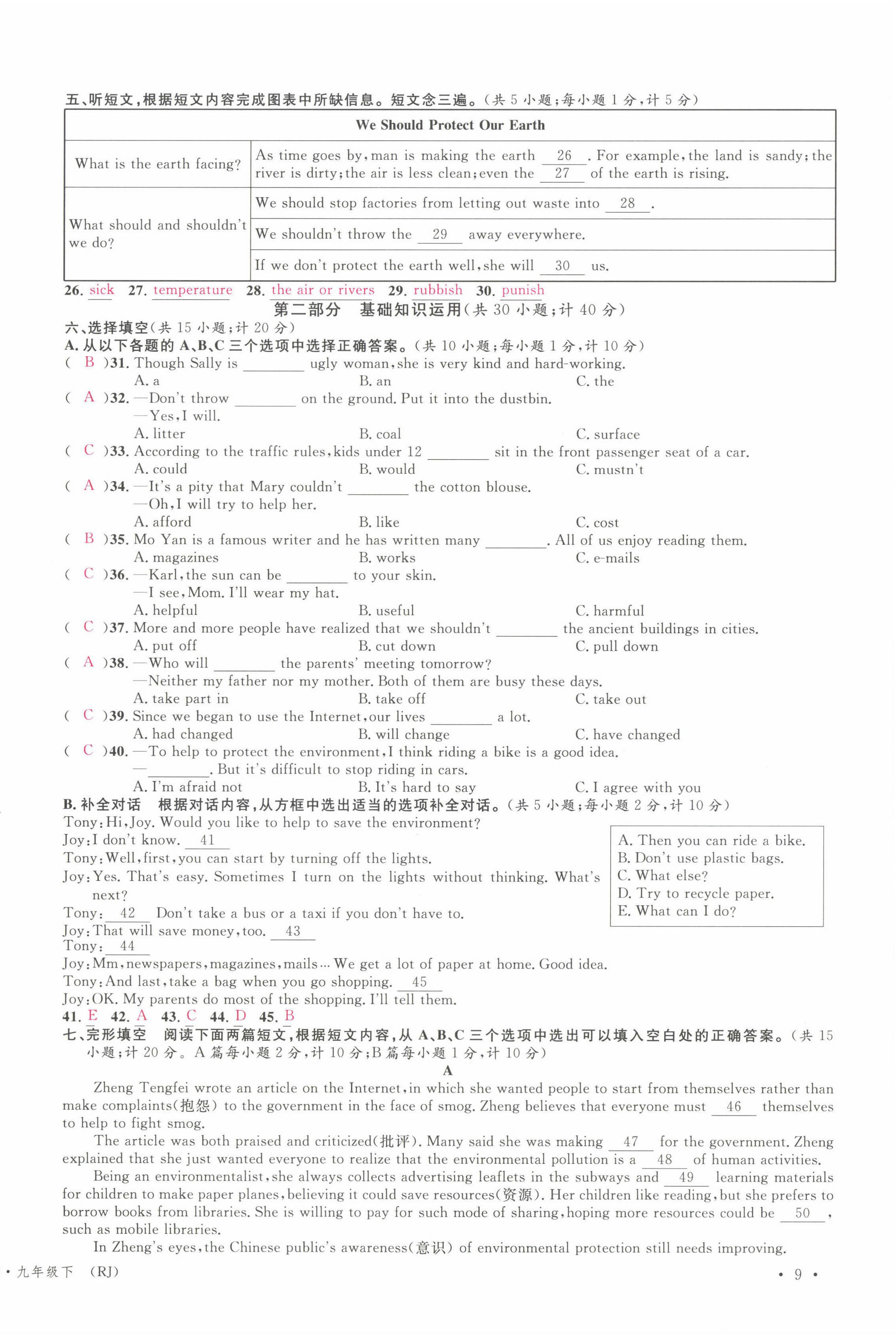 注:目前有些书本章节名称可能整理的还不是很完善,但都是按照顺序排列的,请同学们按照顺序仔细查找。练习册 2022年蓉城名校课堂九年级英语下册人教版 答案主要是用来给同学们做完题方便对答案用的,请勿直接抄袭。