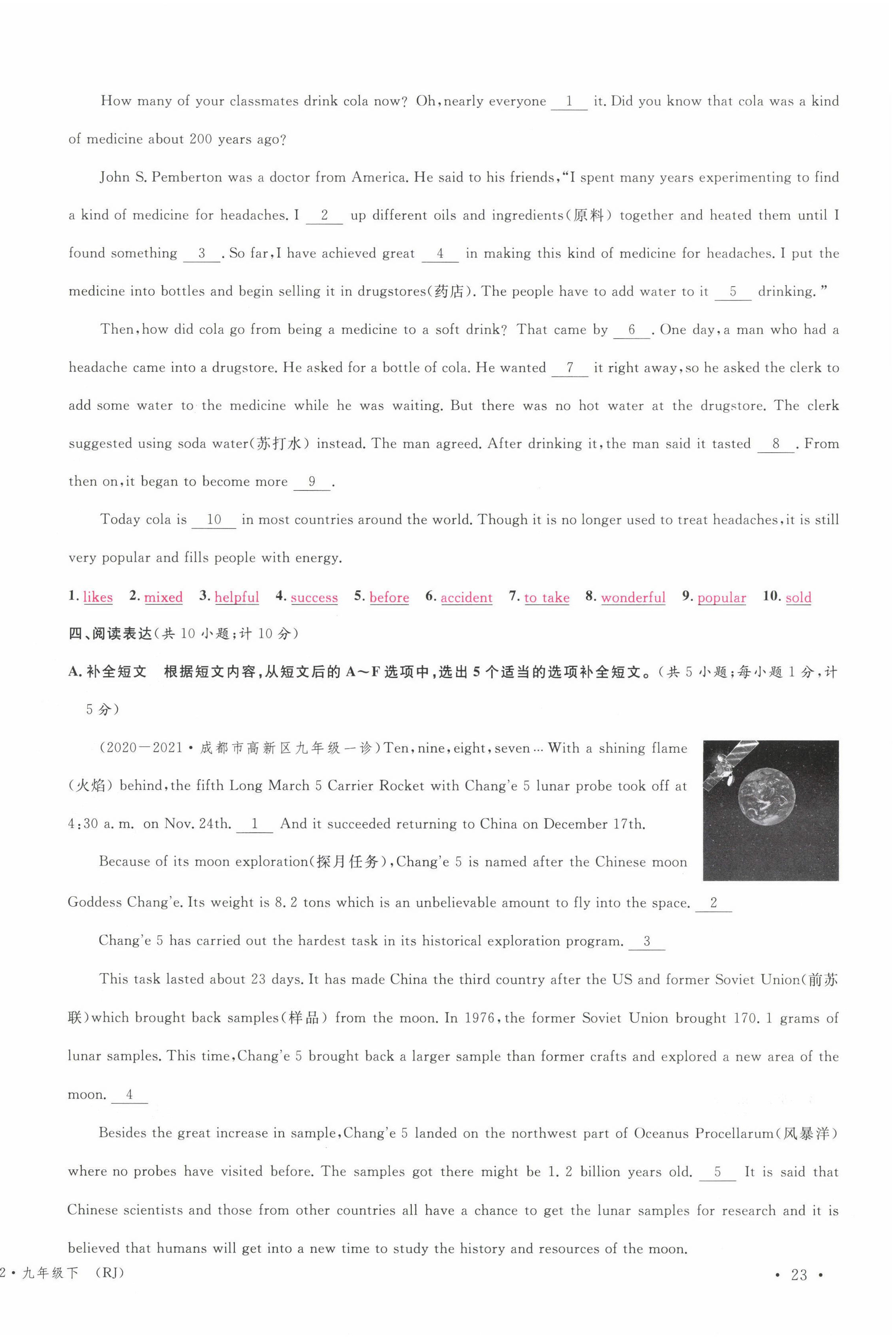 注:目前有些书本章节名称可能整理的还不是很完善,但都是按照顺序排列的,请同学们按照顺序仔细查找。练习册 2022年蓉城名校课堂九年级英语下册人教版 答案主要是用来给同学们做完题方便对答案用的,请勿直接抄袭。
