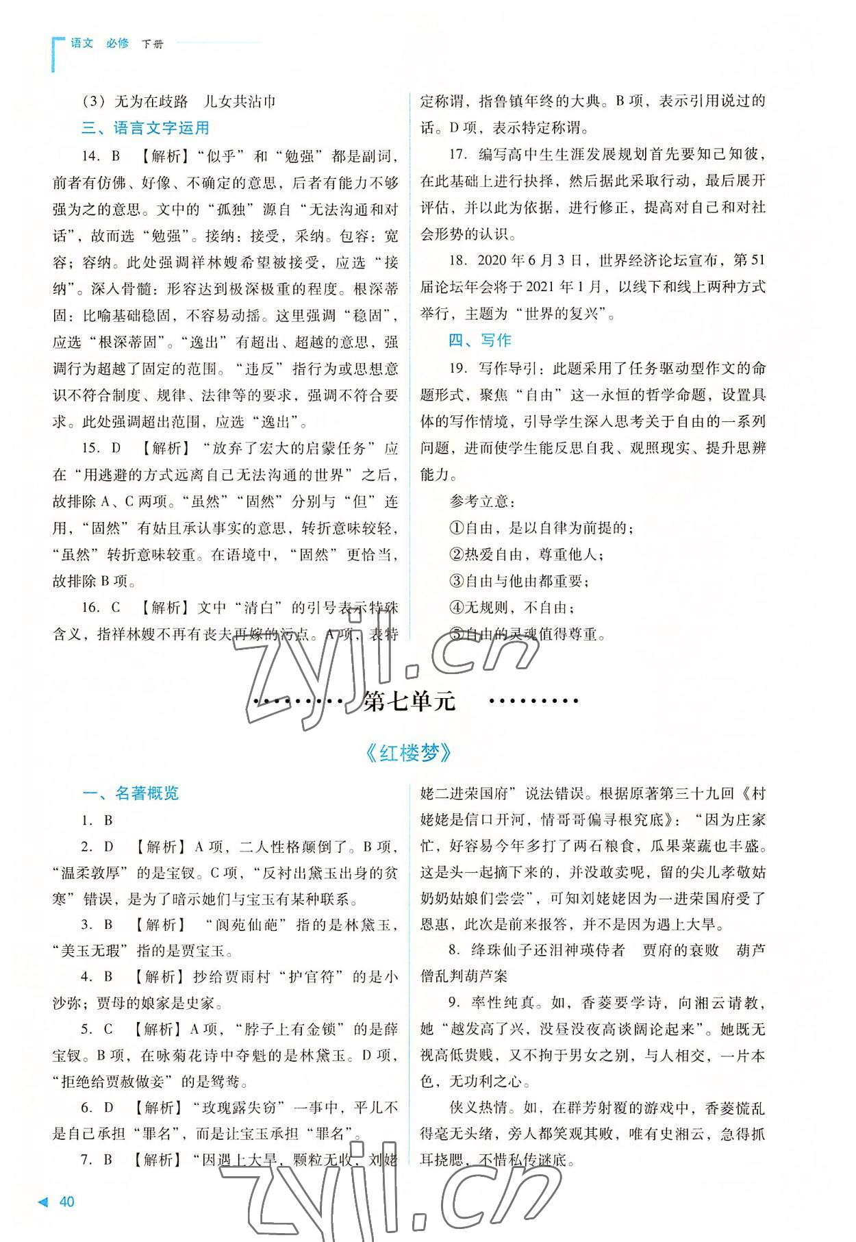 注:目前有些书本章节名称可能整理的还不是很完善,但都是按照顺序排列的,请同学们按照顺序仔细查找。练习册 2022年普通高中新课程同步练习册高中语文下册人教版 答案主要是用来给同学们做完题方便对答案用的,请勿直接抄袭。