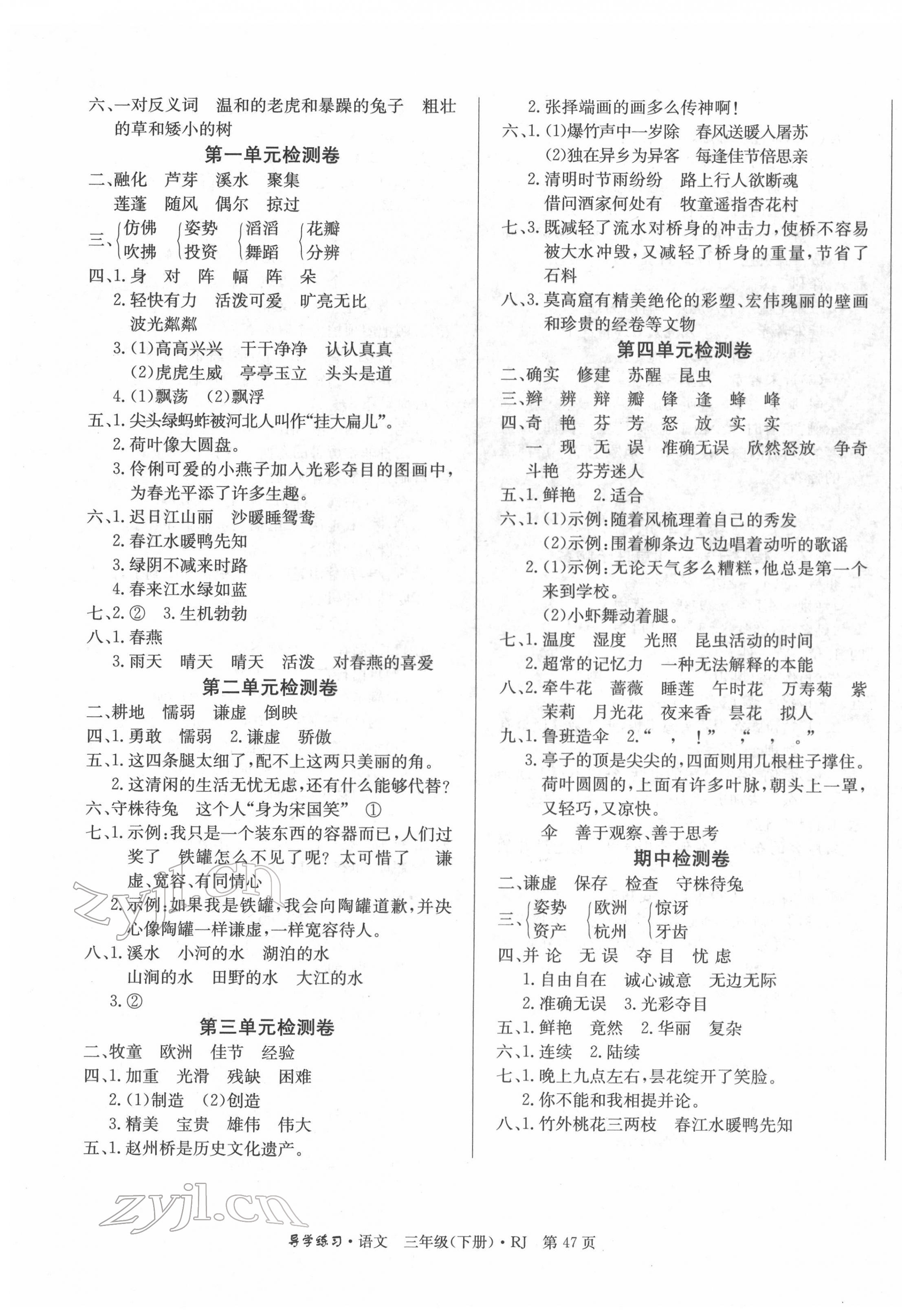 注:目前有些书本章节名称可能整理的还不是很完善,但都是按照顺序排列的,请同学们按照顺序仔细查找。练习册 2022年乐享导学练习三年级语文下册人教版 答案主要是用来给同学们做完题方便对答案用的,请勿直接抄袭。
