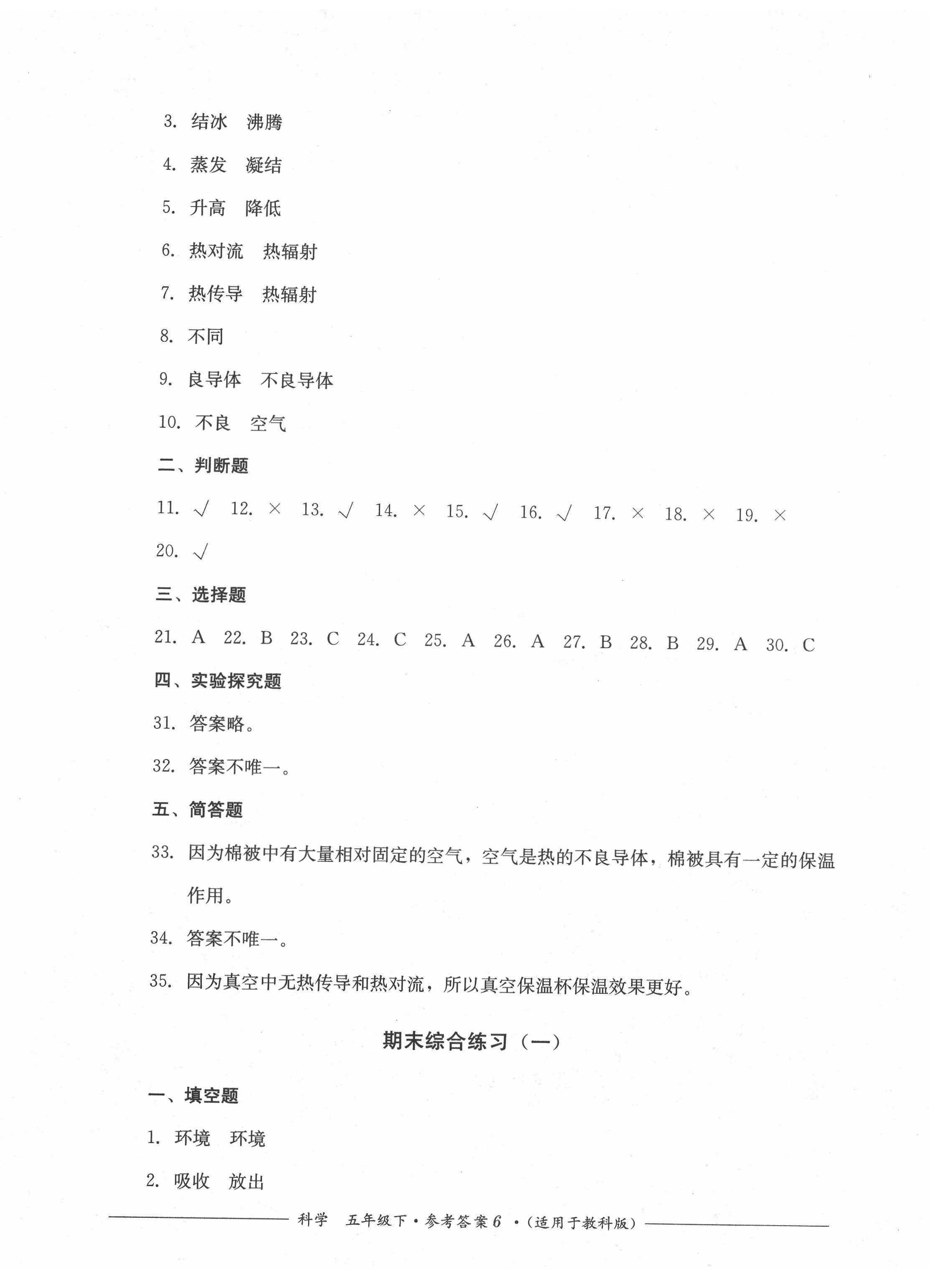 2022年精练过关四川教育出版社五年级科学下册教科版