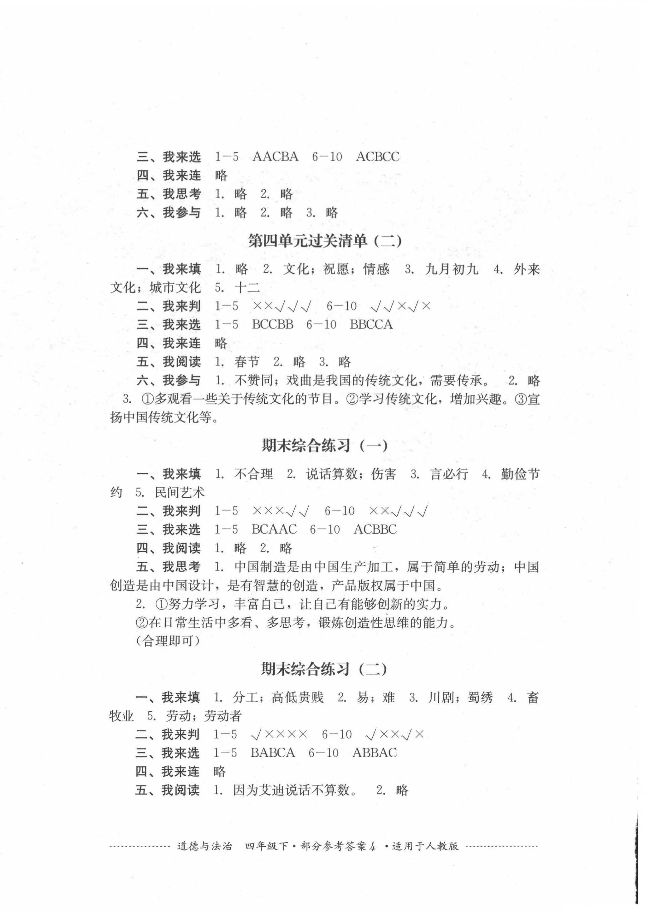 2022年过关清单四川教育出版社四年级道德与法治下册人教版