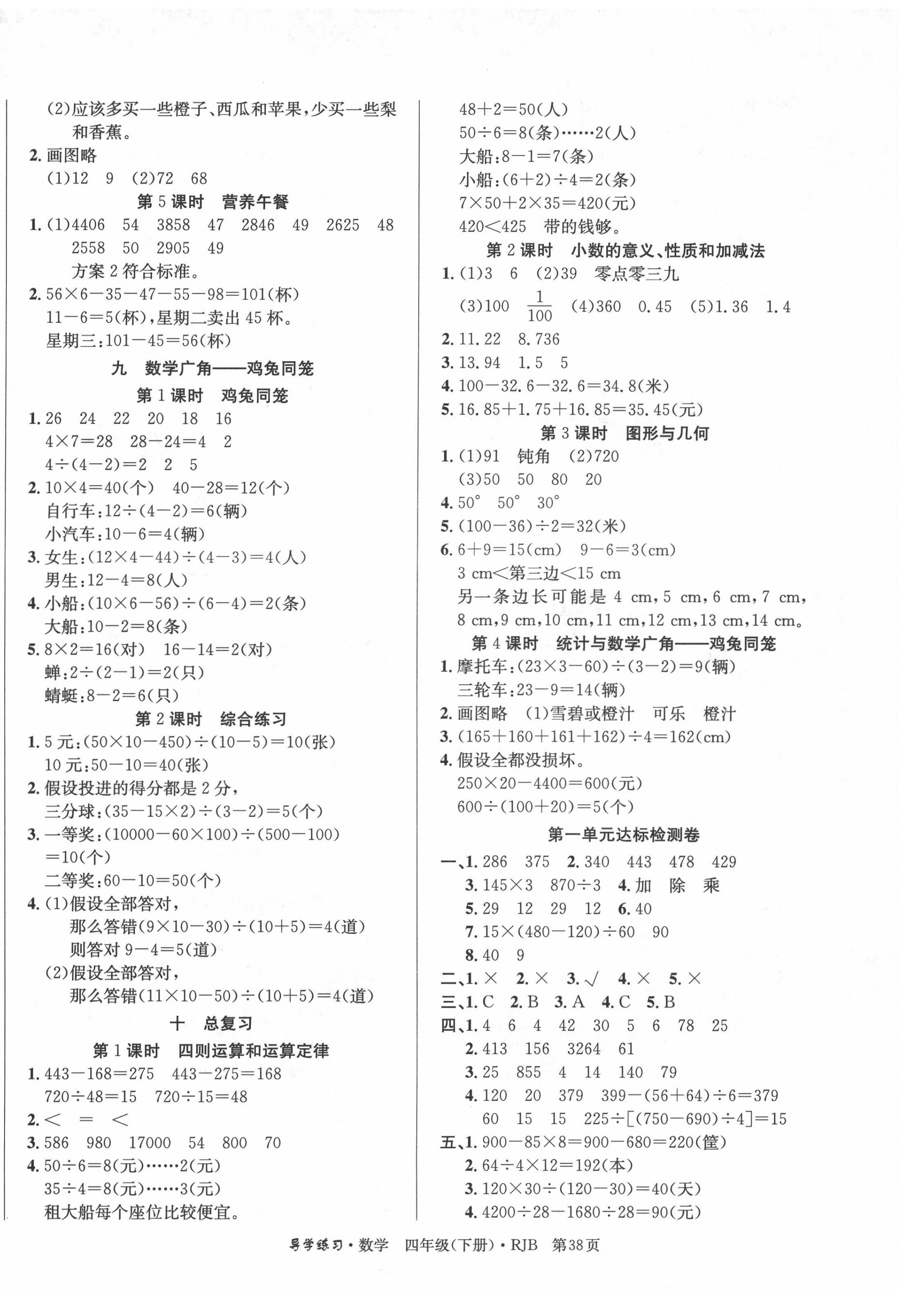 注:目前有些书本章节名称可能整理的还不是很完善,但都是按照顺序排列的,请同学们按照顺序仔细查找。练习册 2022年乐享导学练习四年级数学下册人教版 答案主要是用来给同学们做完题方便对答案用的,请勿直接抄袭。