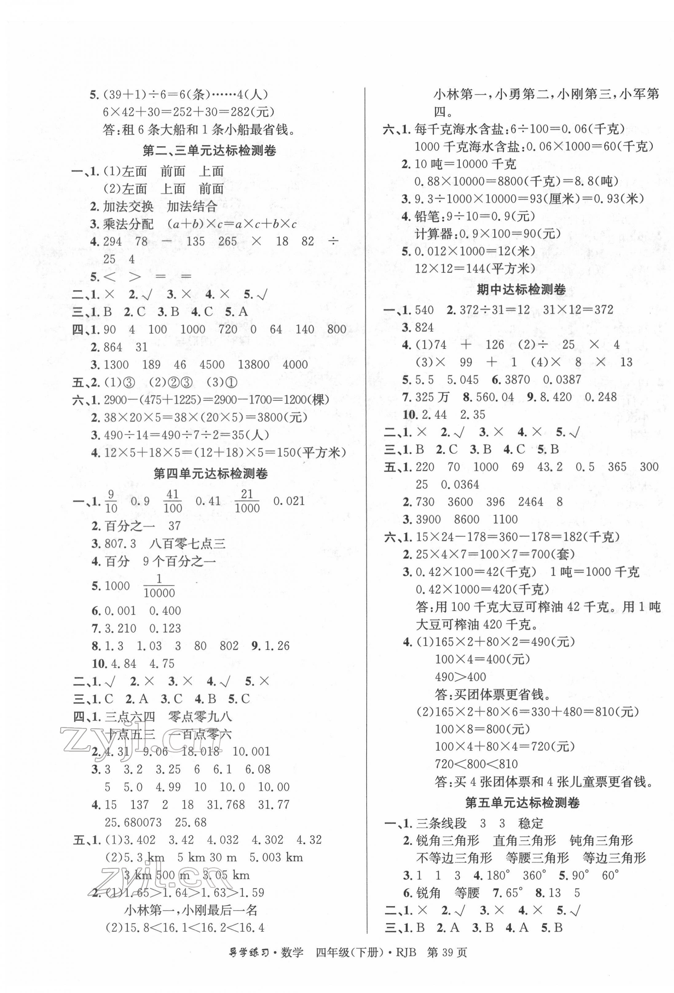 注:目前有些书本章节名称可能整理的还不是很完善,但都是按照顺序排列的,请同学们按照顺序仔细查找。练习册 2022年乐享导学练习四年级数学下册人教版 答案主要是用来给同学们做完题方便对答案用的,请勿直接抄袭。