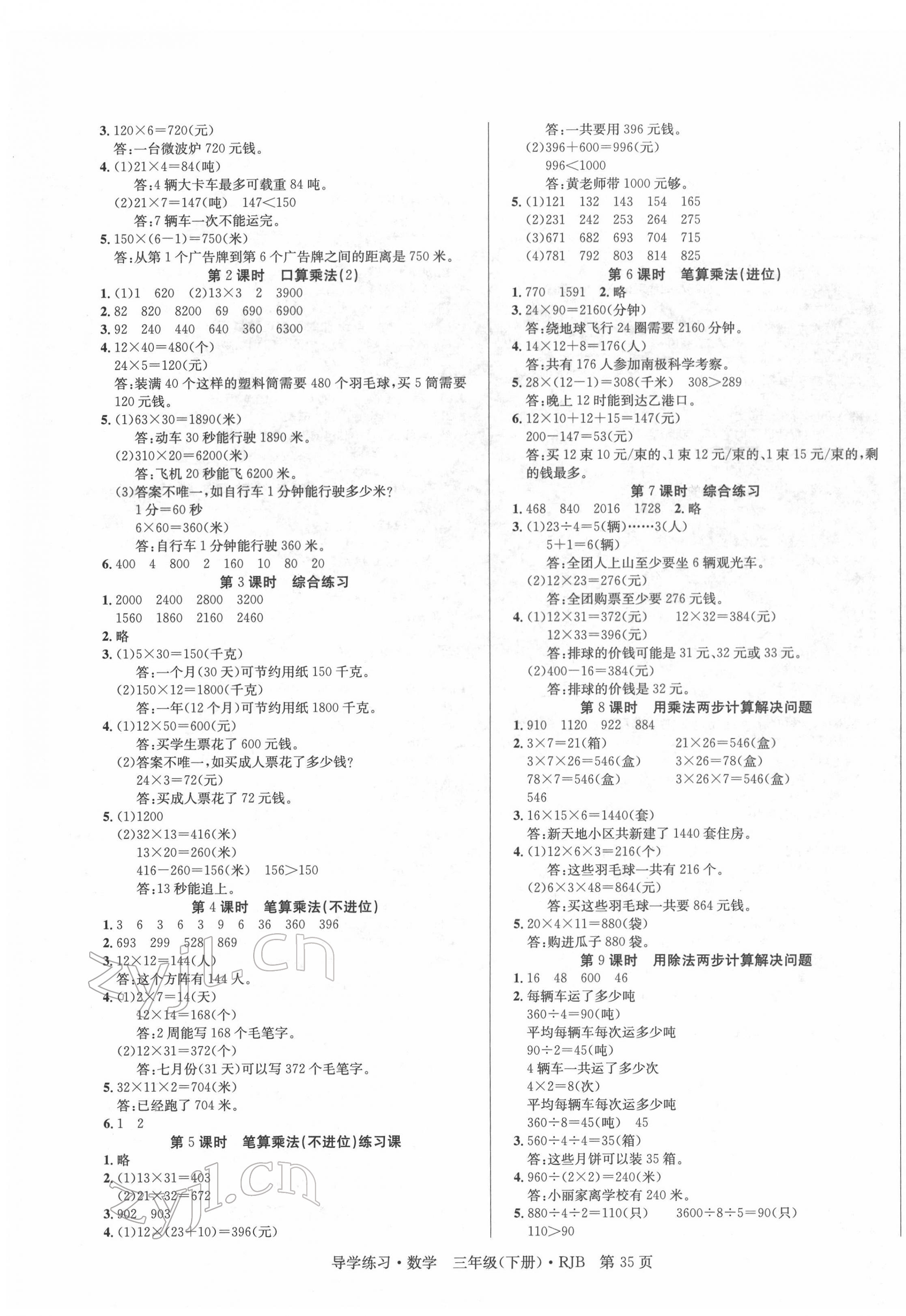 《2022年乐享导学练习三年级数学下册人教版》