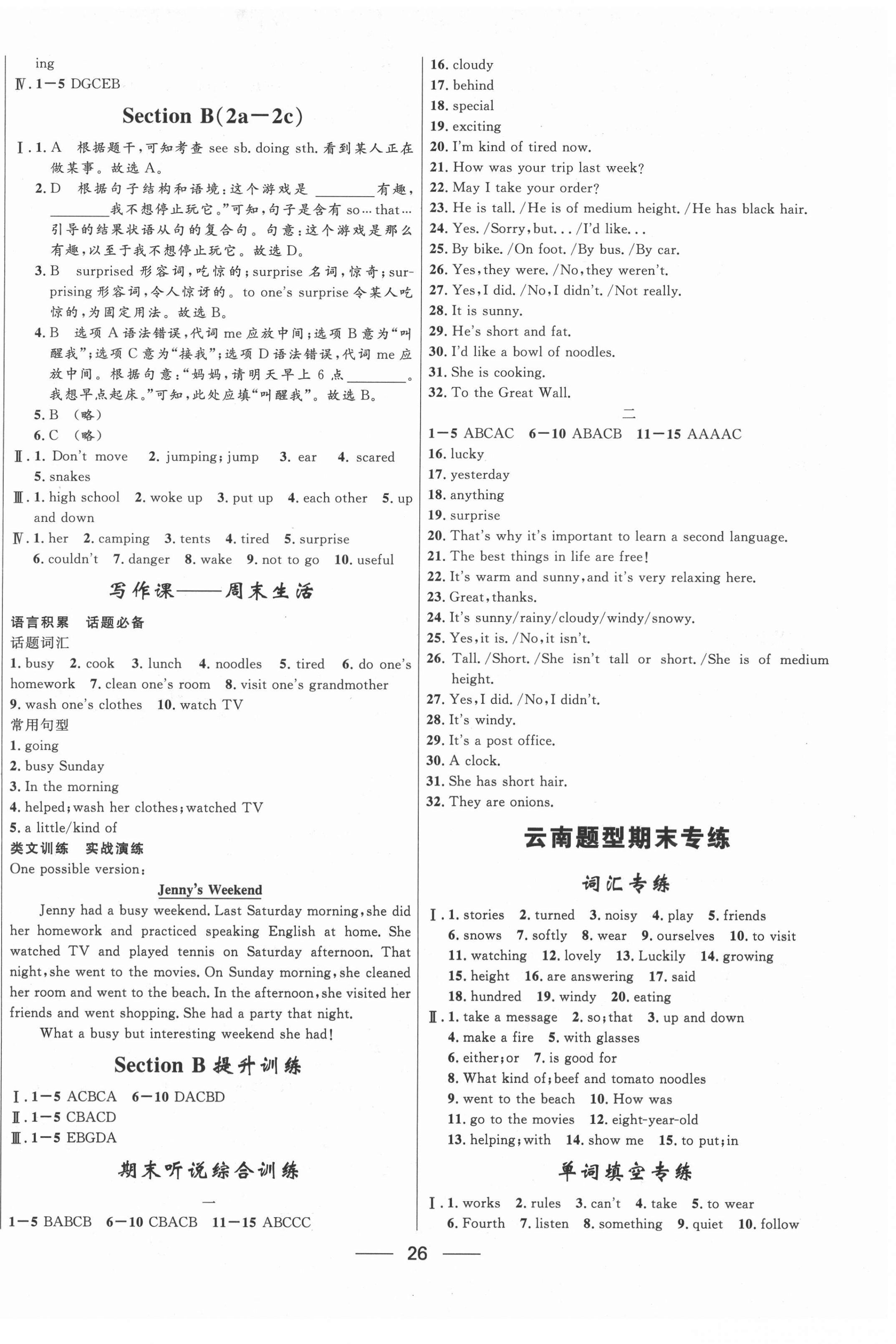 注:目前有些书本章节名称可能整理的还不是很完善,但都是按照顺序排列的,请同学们按照顺序仔细查找。练习册 2022年夺冠百分百新导学课时练七年级英语下册人教版云南专版 答案主要是用来给同学们做完题方便对答案用的,请勿直接抄袭。