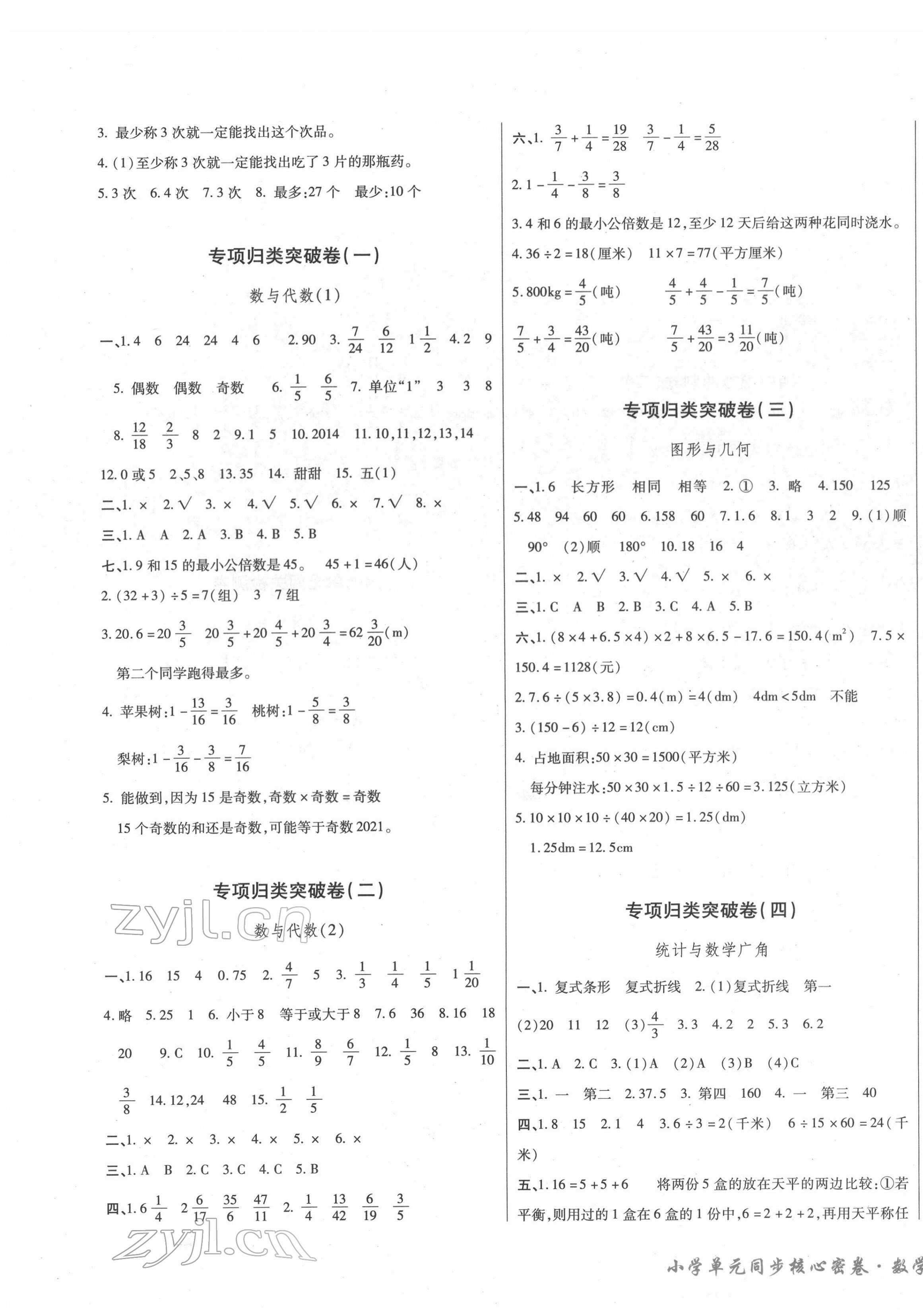 注:目前有些书本章节名称可能整理的还不是很完善,但都是按照顺序排列的,请同学们按照顺序仔细查找。练习册 2022年小学单元同步核心密卷五年级数学下册人教版 答案主要是用来给同学们做完题方便对答案用的,请勿直接抄袭。