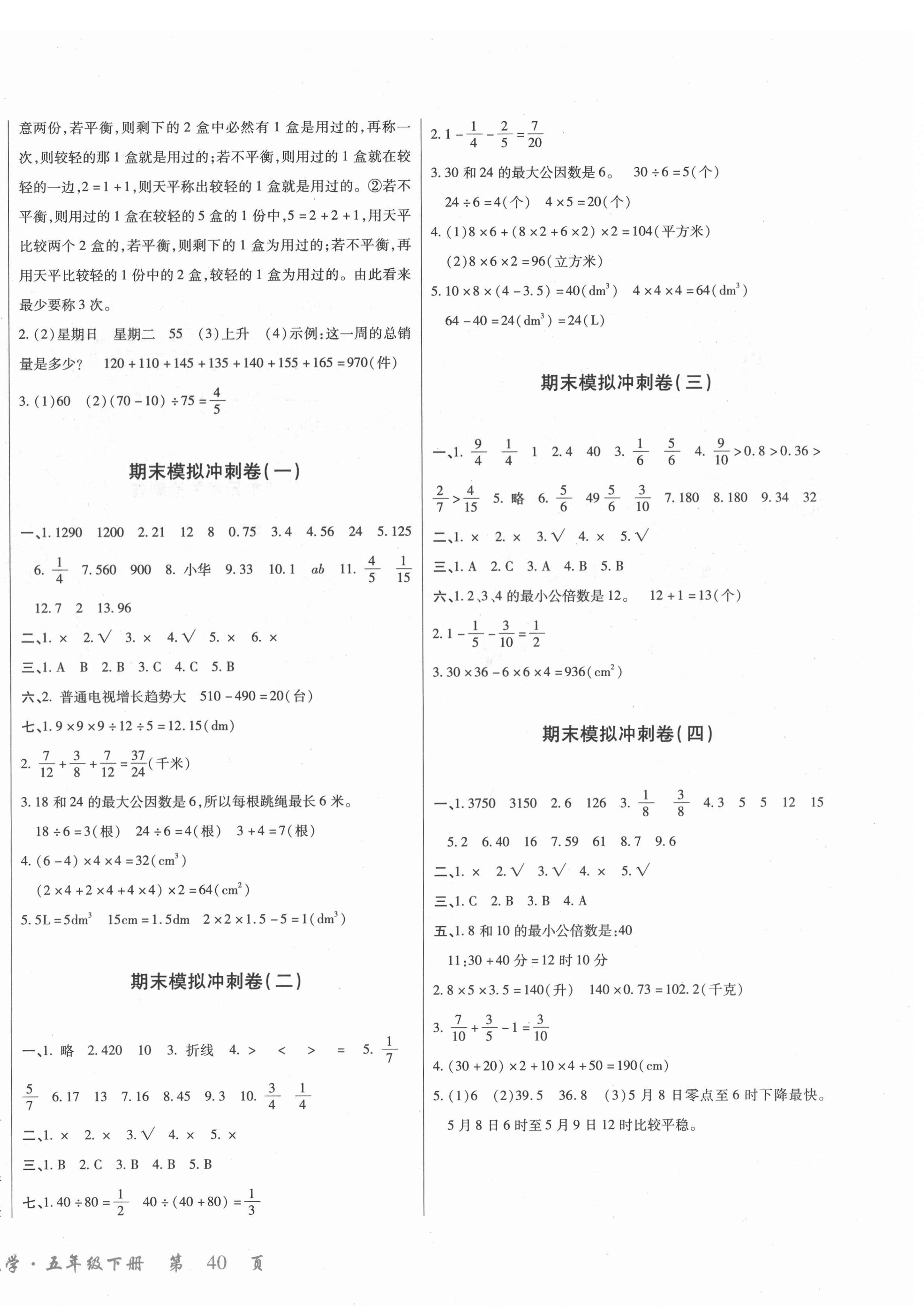 注:目前有些书本章节名称可能整理的还不是很完善,但都是按照顺序排列的,请同学们按照顺序仔细查找。练习册 2022年小学单元同步核心密卷五年级数学下册人教版 答案主要是用来给同学们做完题方便对答案用的,请勿直接抄袭。