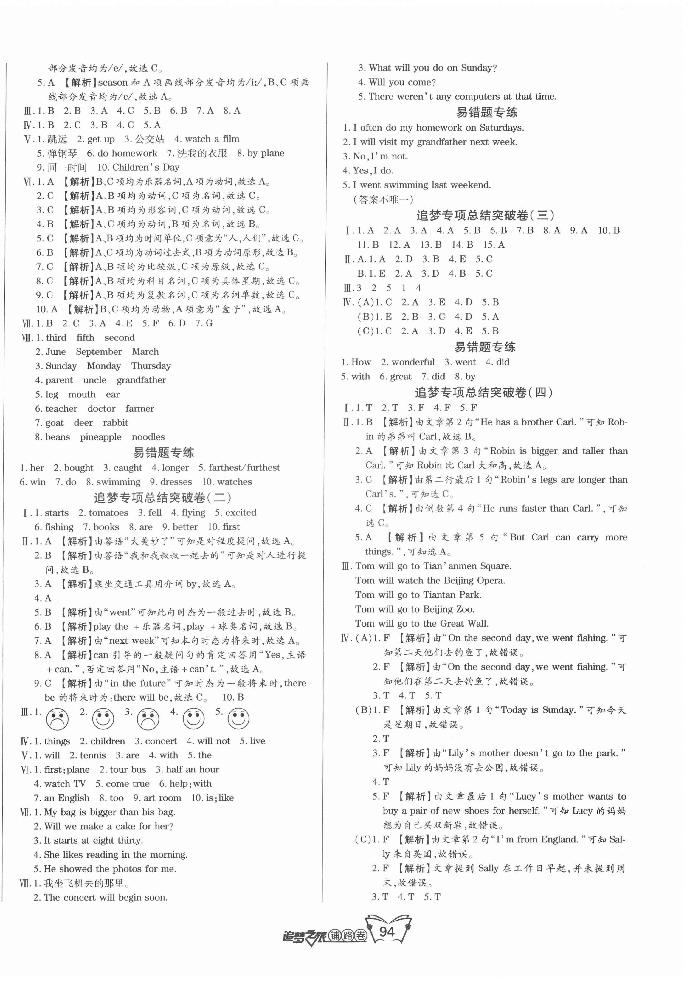 注:目前有些书本章节名称可能整理的还不是很完善,但都是按照顺序排列的,请同学们按照顺序仔细查找。练习册 2022年追梦之旅铺路卷六年级英语下册北师大版 答案主要是用来给同学们做完题方便对答案用的,请勿直接抄袭。