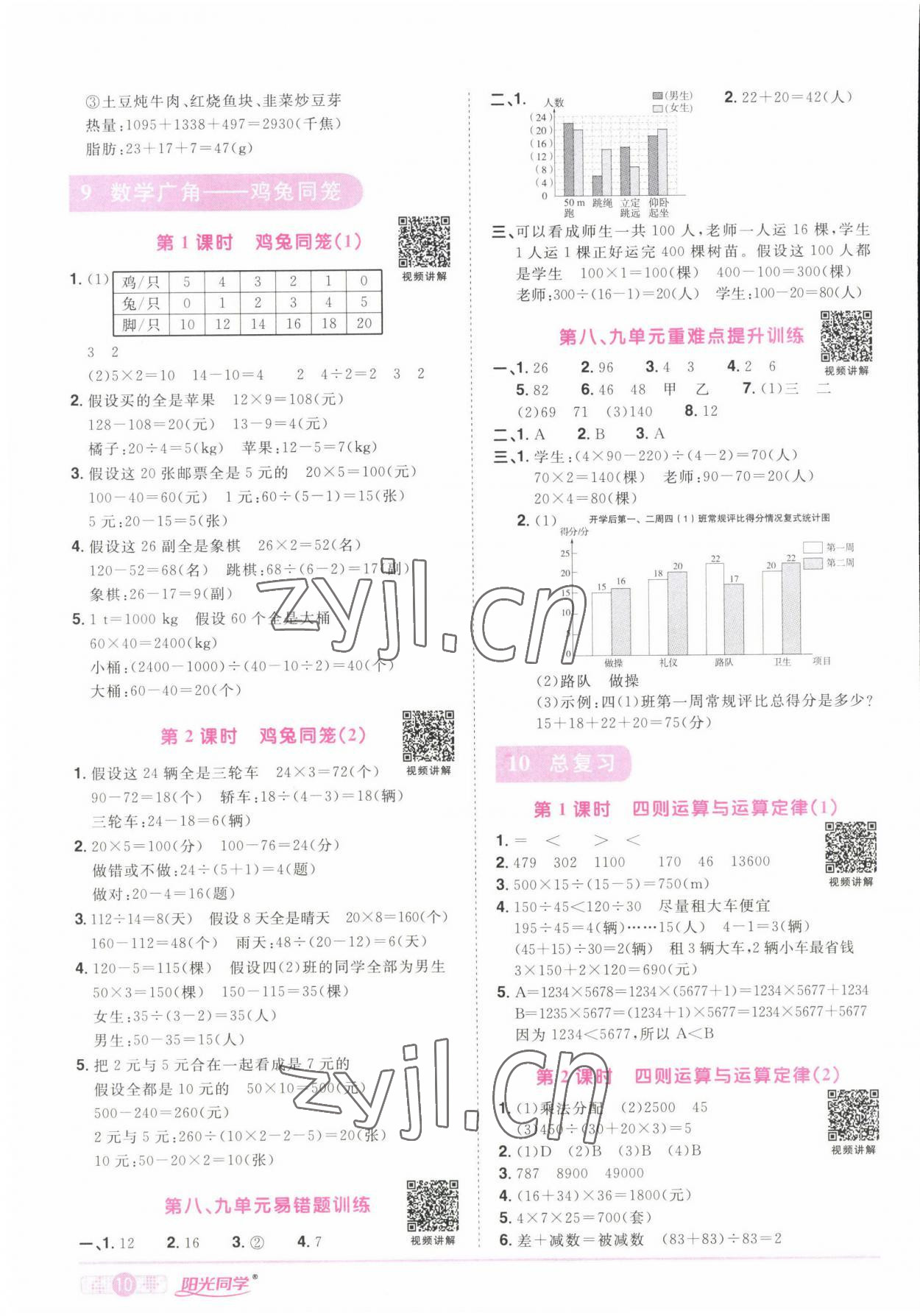 注:目前有些书本章节名称可能整理的还不是很完善,但都是按照顺序排列的,请同学们按照顺序仔细查找。练习册 2022年阳光同学课时优化作业四年级数学下册人教版湖北专版 答案主要是用来给同学们做完题方便对答案用的,请勿直接抄袭。