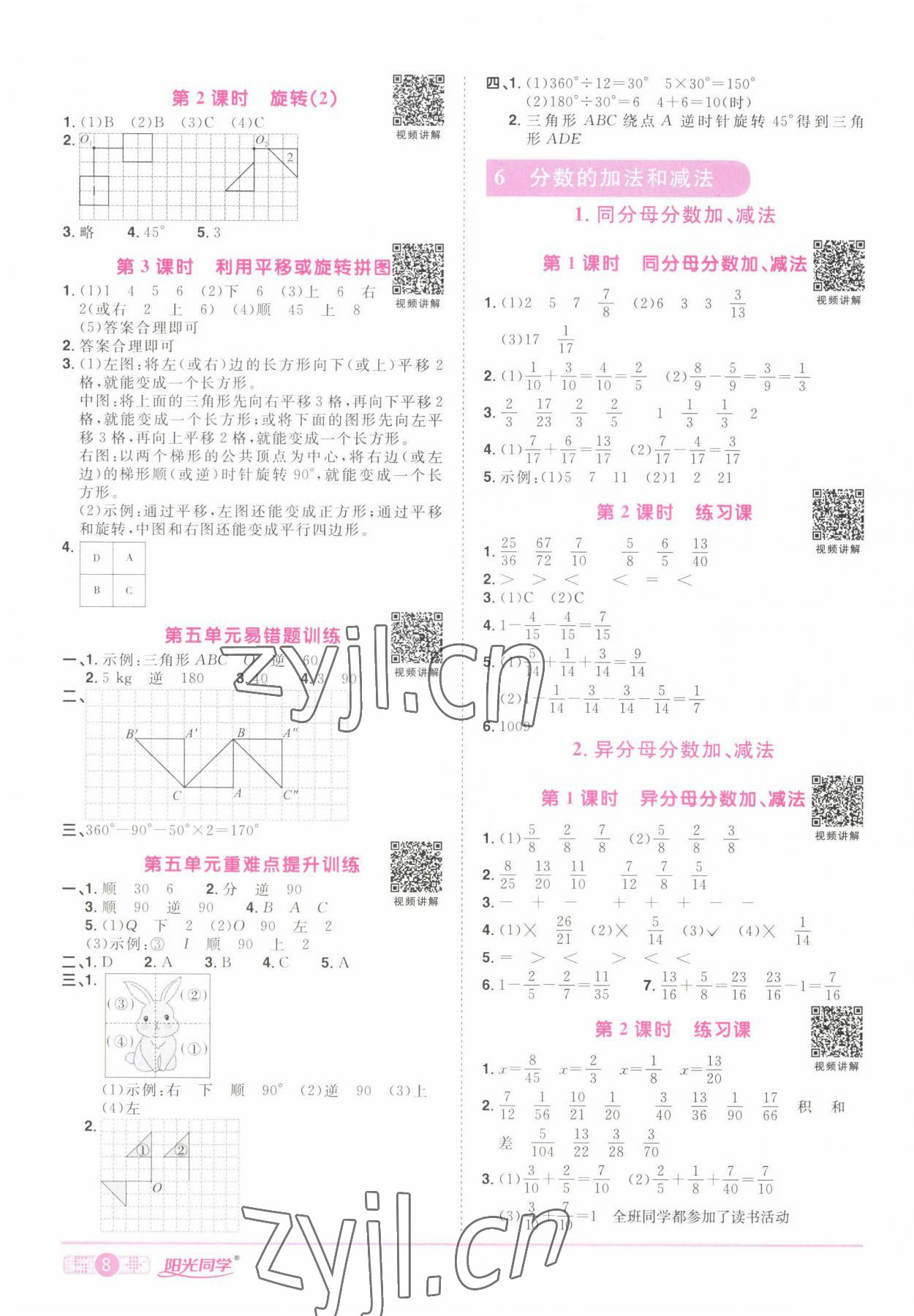 注:目前有些书本章节名称可能整理的还不是很完善,但都是按照顺序排列的,请同学们按照顺序仔细查找。练习册 2022年阳光同学课时优化作业五年级数学下册人教版湖北专版 答案主要是用来给同学们做完题方便对答案用的,请勿直接抄袭。