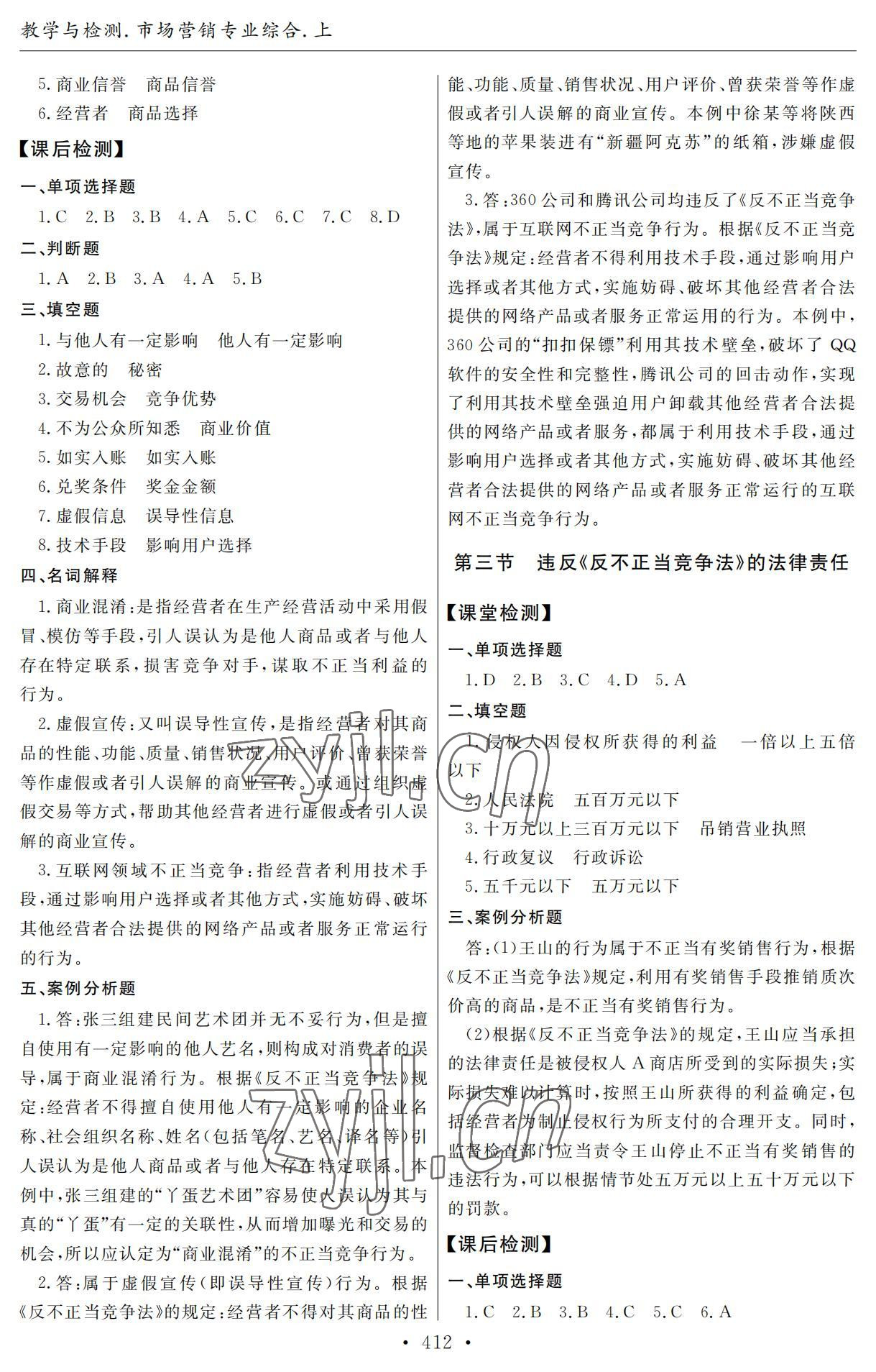 注:目前有些书本章节名称可能整理的还不是很完善,但都是按照顺序排列的,请同学们按照顺序仔细查找。练习册 2022年教学与检测市场营销专业综合上册 答案主要是用来给同学们做完题方便对答案用的,请勿直接抄袭。