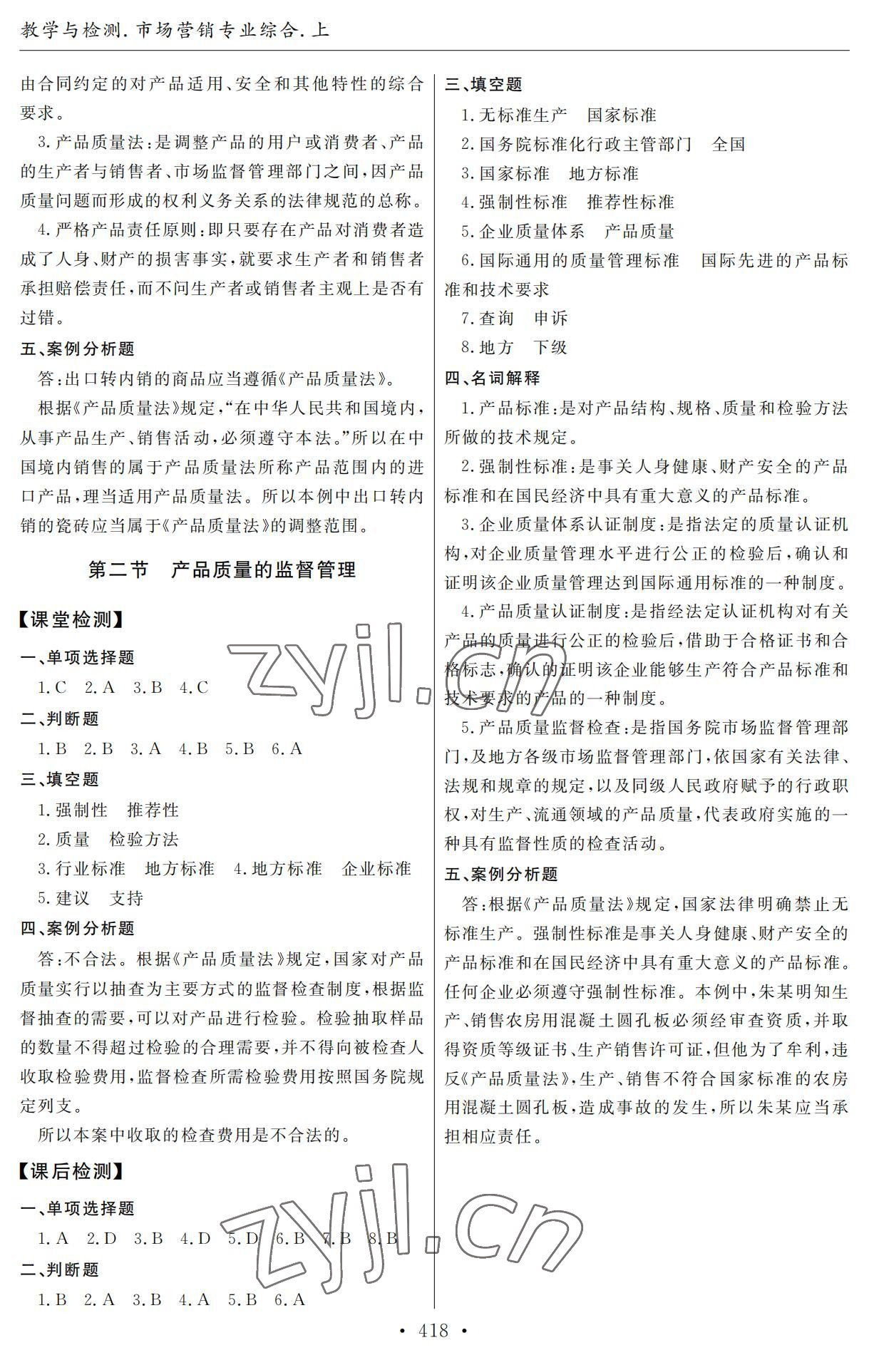 注:目前有些书本章节名称可能整理的还不是很完善,但都是按照顺序排列的,请同学们按照顺序仔细查找。练习册 2022年教学与检测市场营销专业综合上册 答案主要是用来给同学们做完题方便对答案用的,请勿直接抄袭。