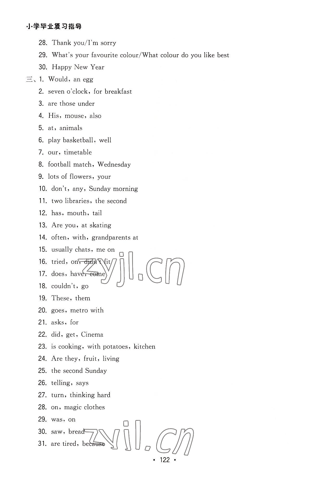 注:目前有些书本章节名称可能整理的还不是很完善,但都是按照顺序排列的,请同学们按照顺序仔细查找。练习册 2022年小学毕业复习指导英语分册 答案主要是用来给同学们做完题方便对答案用的,请勿直接抄袭。