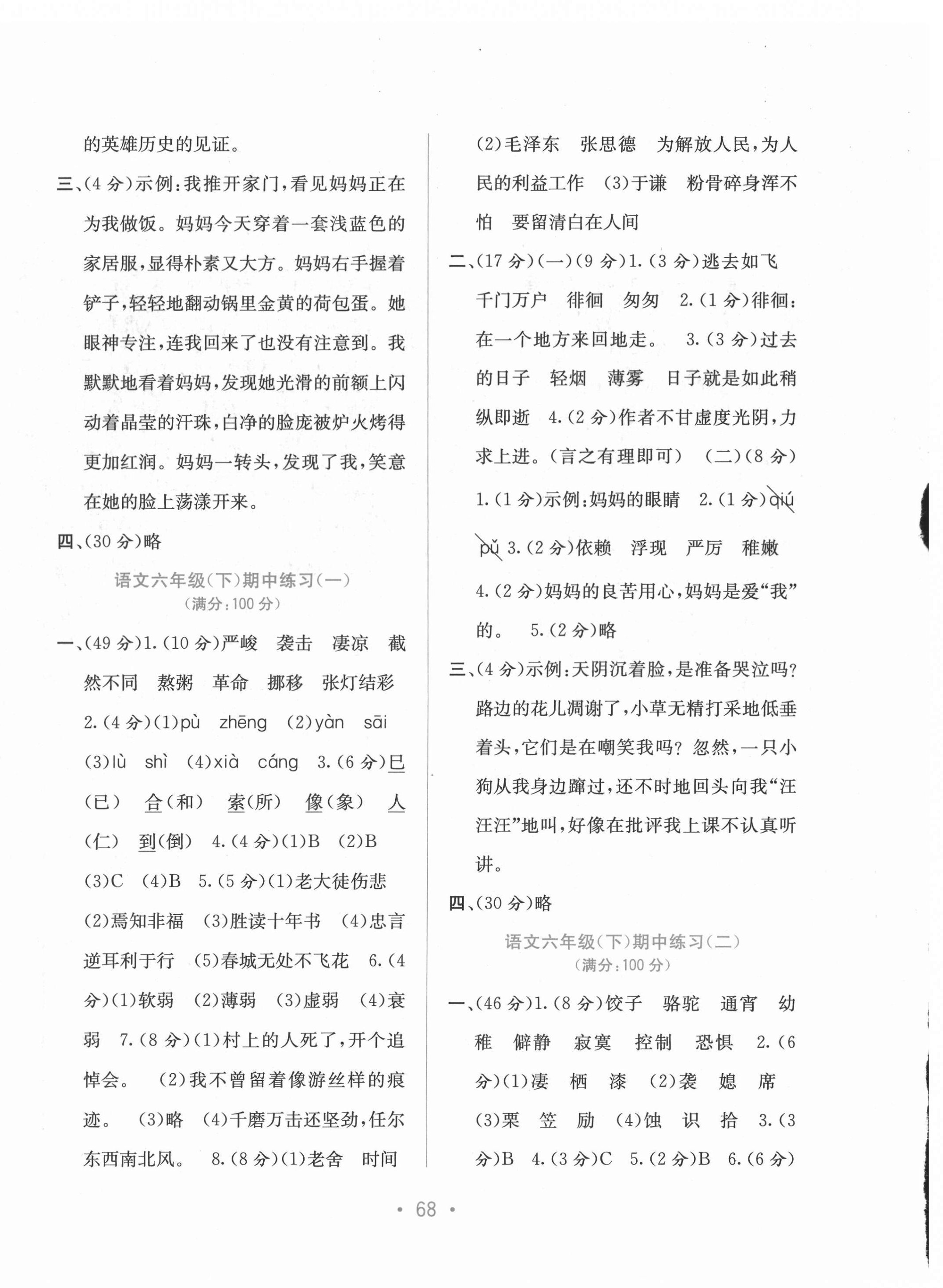 注:目前有些书本章节名称可能整理的还不是很完善,但都是按照顺序排列的,请同学们按照顺序仔细查找。练习册 2022年全程检测单元测试卷六年级语文下册人教版A 答案主要是用来给同学们做完题方便对答案用的,请勿直接抄袭。
