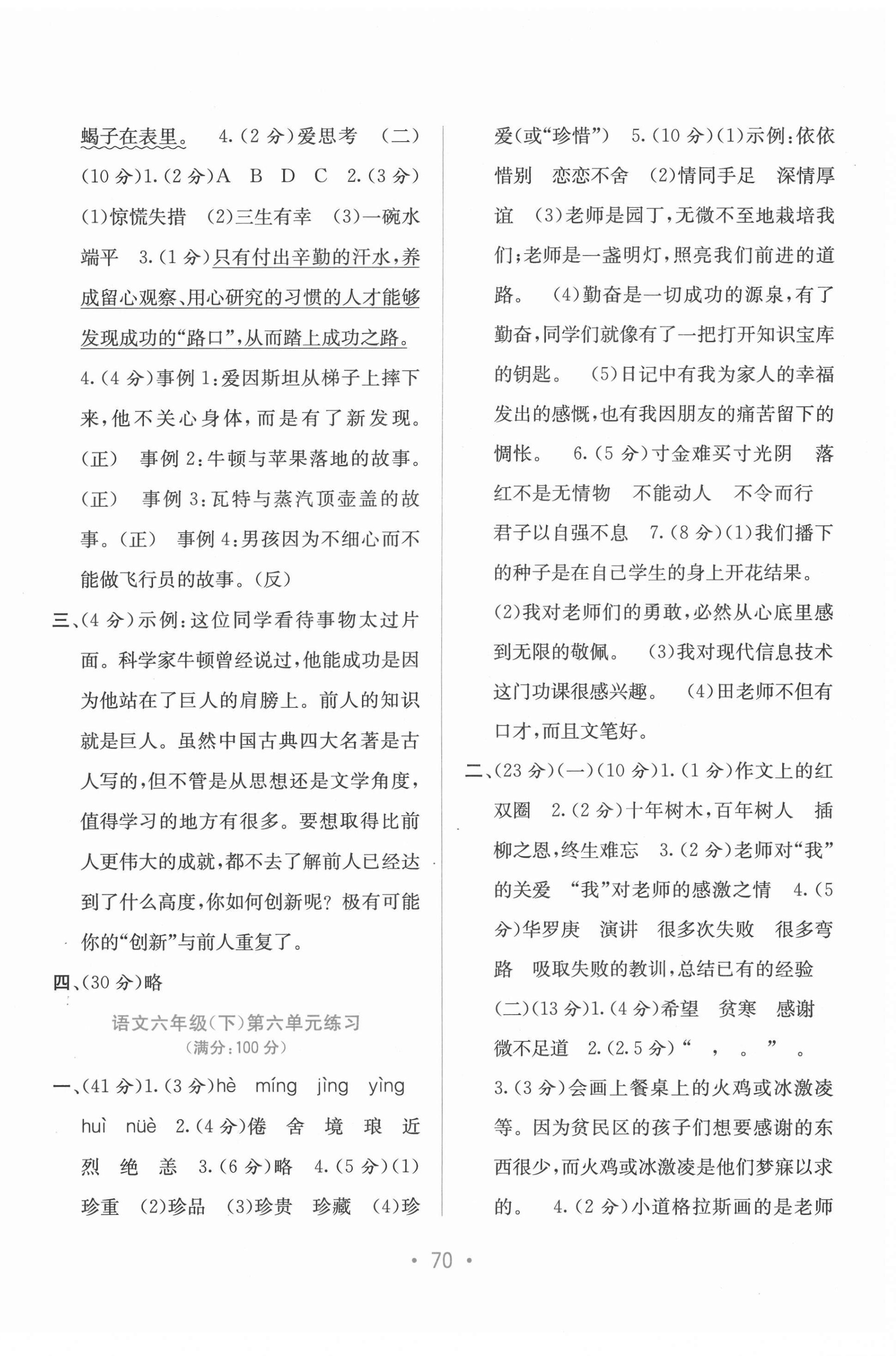 注:目前有些书本章节名称可能整理的还不是很完善,但都是按照顺序排列的,请同学们按照顺序仔细查找。练习册 2022年全程检测单元测试卷六年级语文下册人教版A 答案主要是用来给同学们做完题方便对答案用的,请勿直接抄袭。