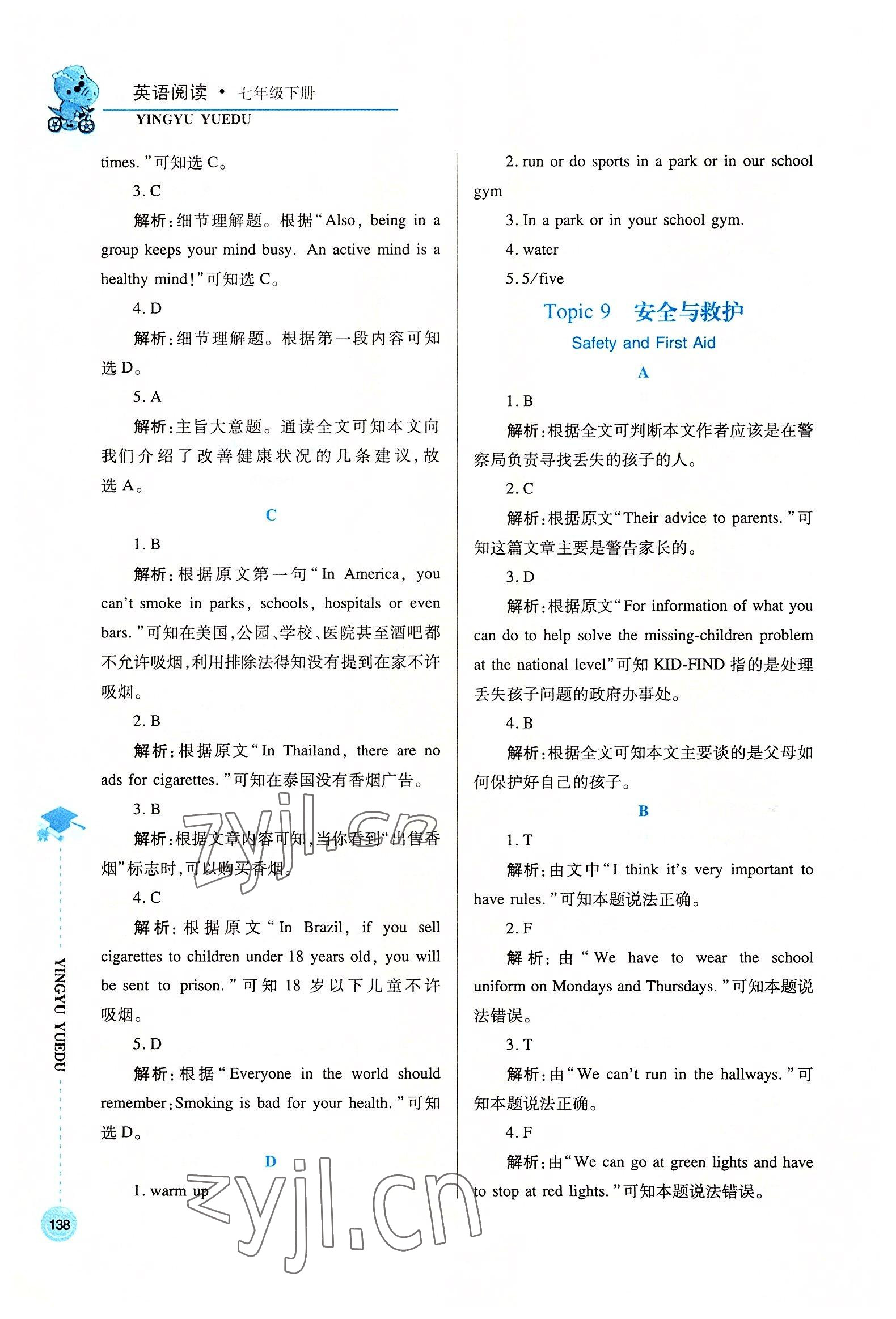 注:目前有些书本章节名称可能整理的还不是很完善,但都是按照顺序排列的,请同学们按照顺序仔细查找。练习册 2022年英语阅读七年级下册 答案主要是用来给同学们做完题方便对答案用的,请勿直接抄袭。
