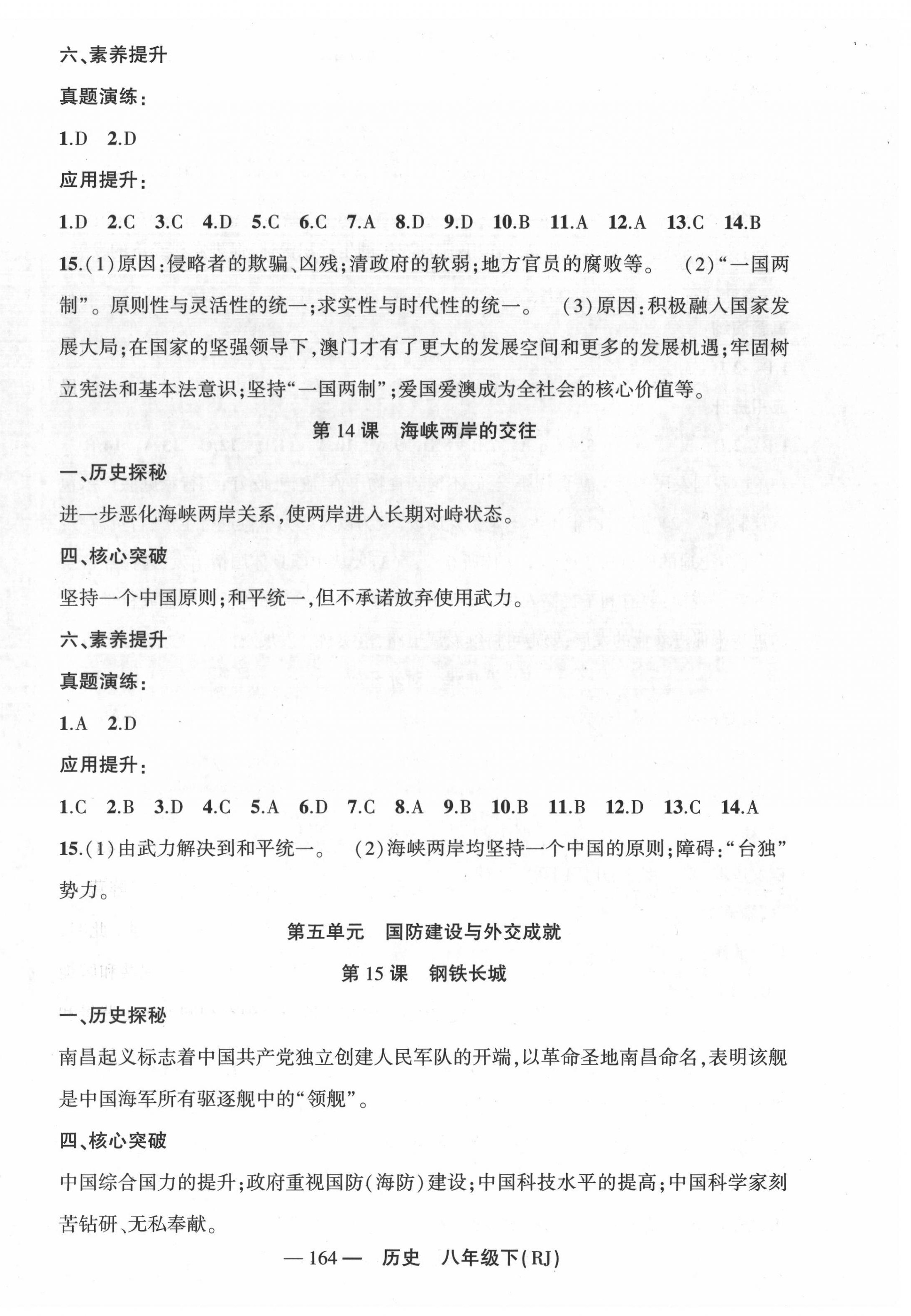 注:目前有些书本章节名称可能整理的还不是很完善,但都是按照顺序排列的,请同学们按照顺序仔细查找。练习册 2022年原创新课堂八年级历史下册人教版广东专版 答案主要是用来给同学们做完题方便对答案用的,请勿直接抄袭。