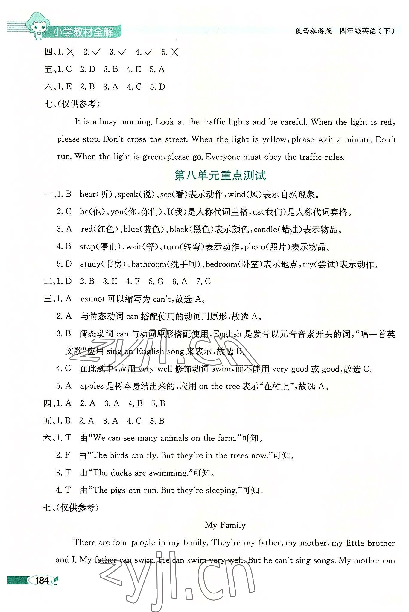注:目前有些书本章节名称可能整理的还不是很完善,但都是按照顺序排列的,请同学们按照顺序仔细查找。练习册 2022年教材全解四年级英语下册陕旅版 答案主要是用来给同学们做完题方便对答案用的,请勿直接抄袭。