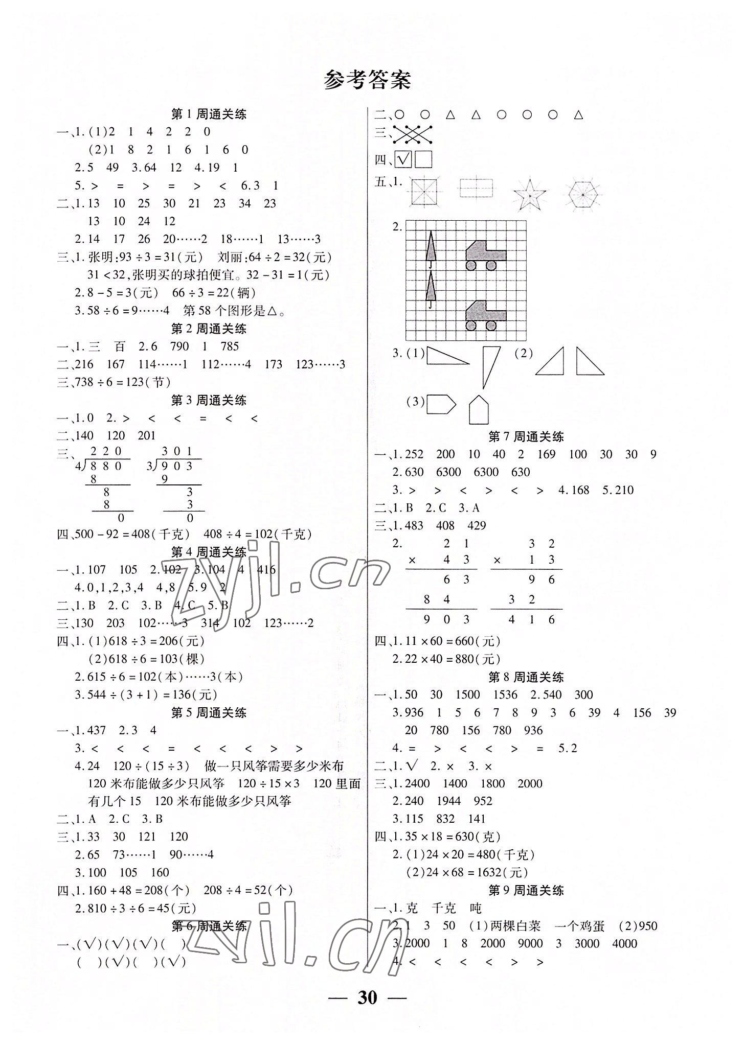 注:目前有些书本章节名称可能整理的还不是很完善,但都是按照顺序排列的,请同学们按照顺序仔细查找。练习册 2022年名师领冠课时通关三年级数学下册北师大版 答案主要是用来给同学们做完题方便对答案用的,请勿直接抄袭。
