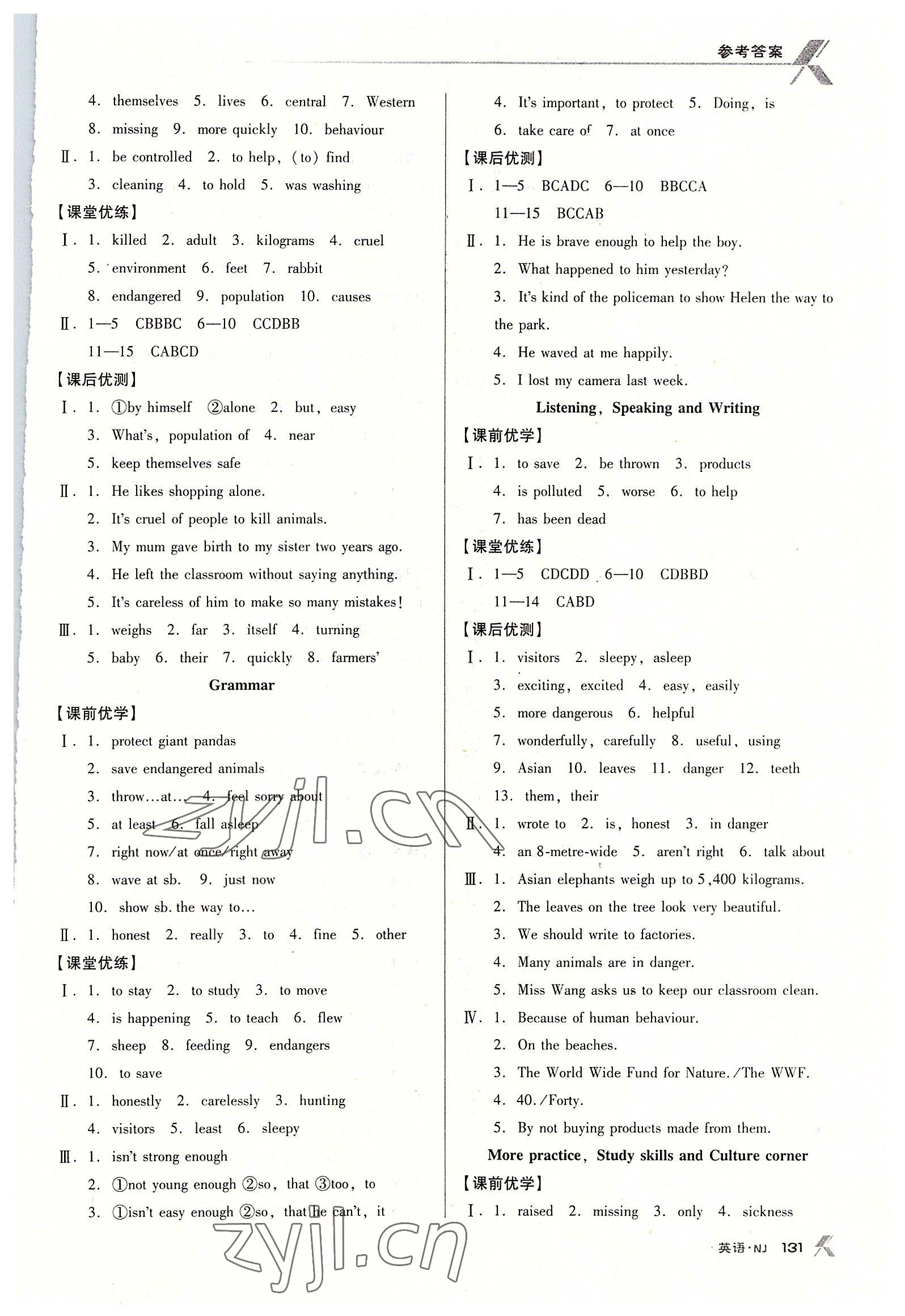 注:目前有些书本章节名称可能整理的还不是很完善,但都是按照顺序排列的,请同学们按照顺序仔细查找。练习册 2022年全优点练课计划八年级英语下册沪教版 答案主要是用来给同学们做完题方便对答案用的,请勿直接抄袭。