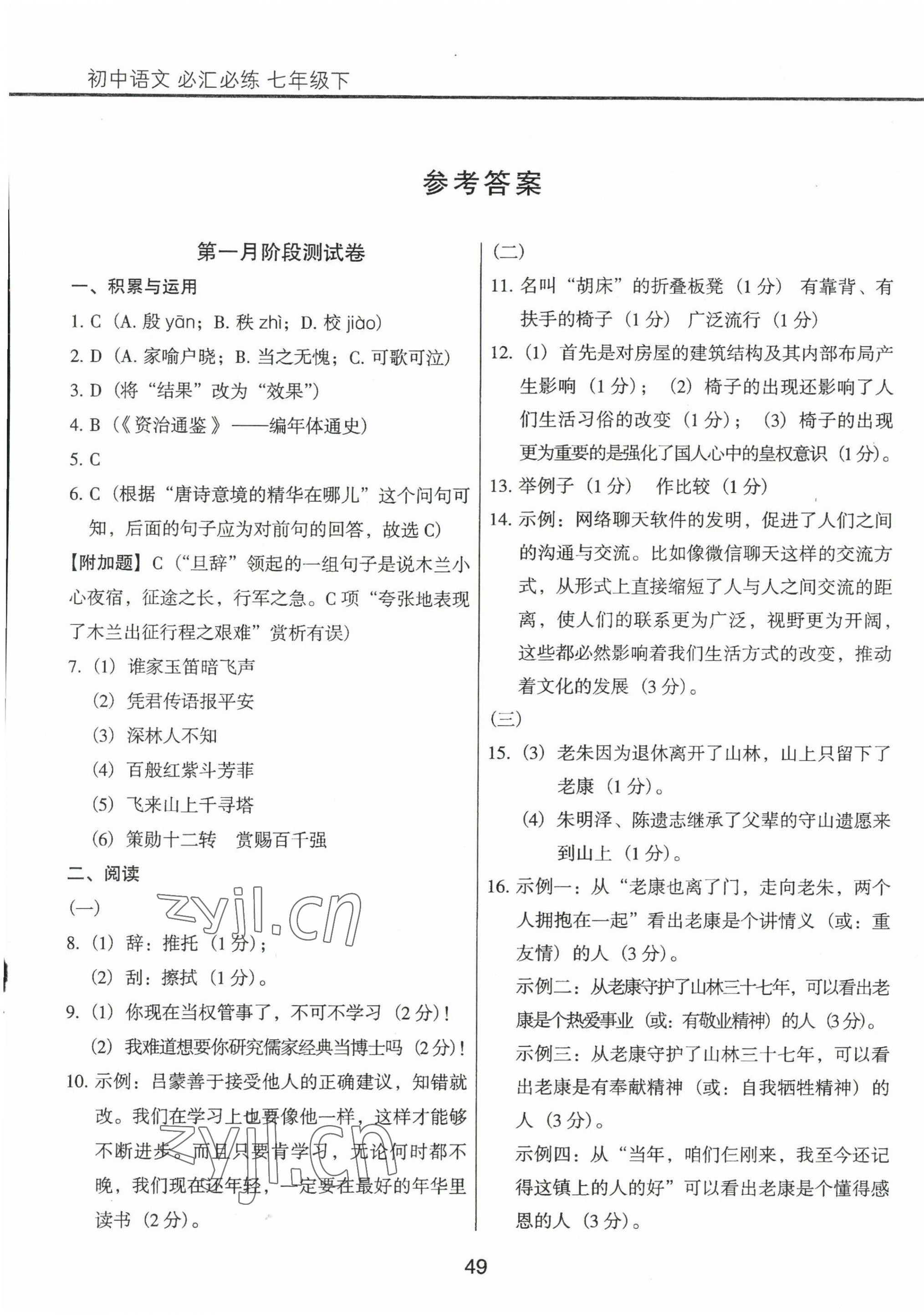 注:目前有些书本章节名称可能整理的还不是很完善,但都是按照顺序排列的,请同学们按照顺序仔细查找。练习册 2022年汇练七年级语文下册人教版54制 答案主要是用来给同学们做完题方便对答案用的,请勿直接抄袭。