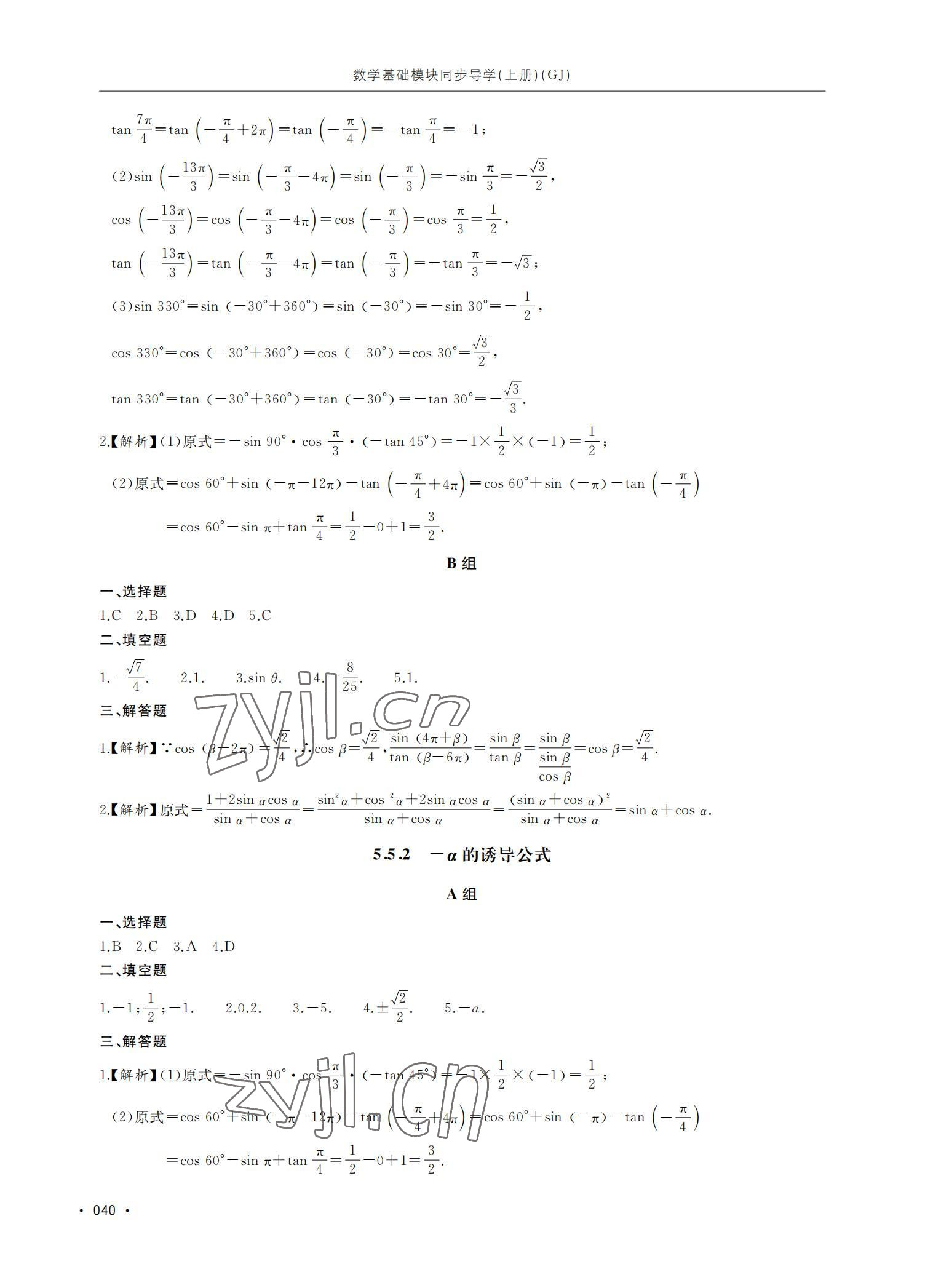 注:目前有些书本章节名称可能整理的还不是很完善,但都是按照顺序排列的,请同学们按照顺序仔细查找。练习册 2022年数学基础模块同步导学上册 答案主要是用来给同学们做完题方便对答案用的,请勿直接抄袭。