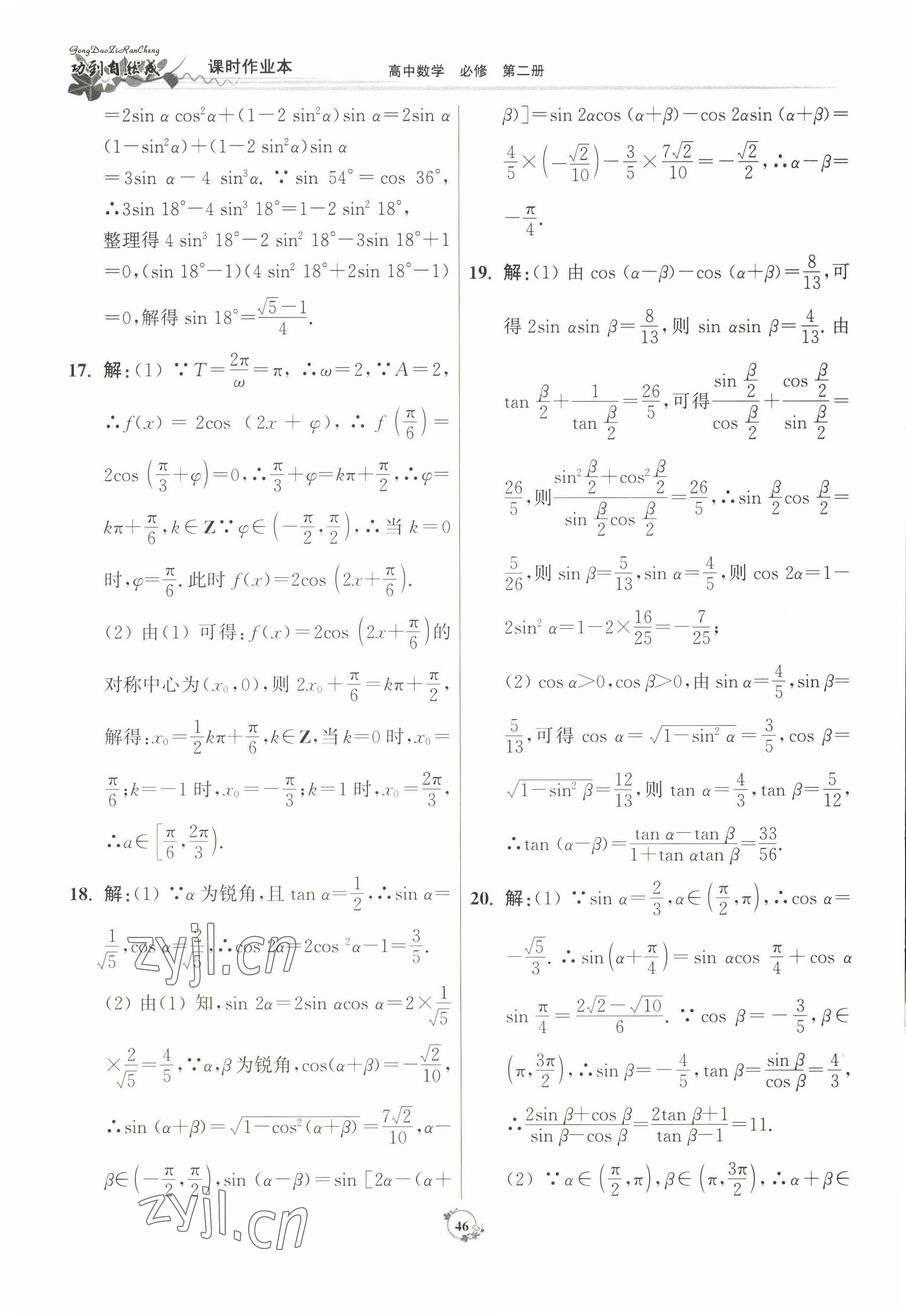 注:目前有些书本章节名称可能整理的还不是很完善,但都是按照顺序排列的,请同学们按照顺序仔细查找。练习册 2022年功到自然成课时作业本数学必修第二册 答案主要是用来给同学们做完题方便对答案用的,请勿直接抄袭。