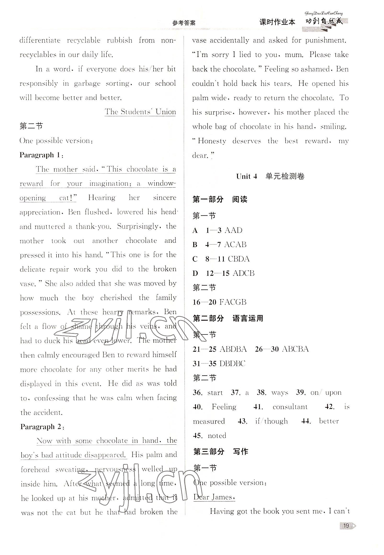 注:目前有些书本章节名称可能整理的还不是很完善,但都是按照顺序排列的,请同学们按照顺序仔细查找。练习册 2022年功到自然成课时作业本英语选择性必修第四册译林版 答案主要是用来给同学们做完题方便对答案用的,请勿直接抄袭。