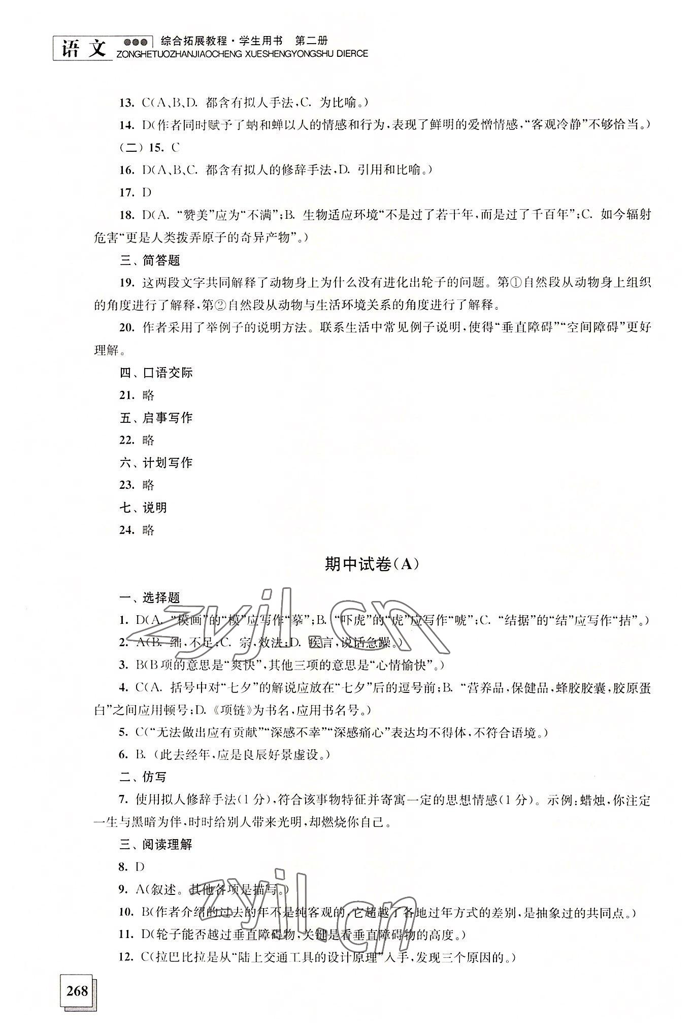 注:目前有些书本章节名称可能整理的还不是很完善,但都是按照顺序排列的,请同学们按照顺序仔细查找。练习册 2022年语文综合拓展教程学生用书第二册 答案主要是用来给同学们做完题方便对答案用的,请勿直接抄袭。