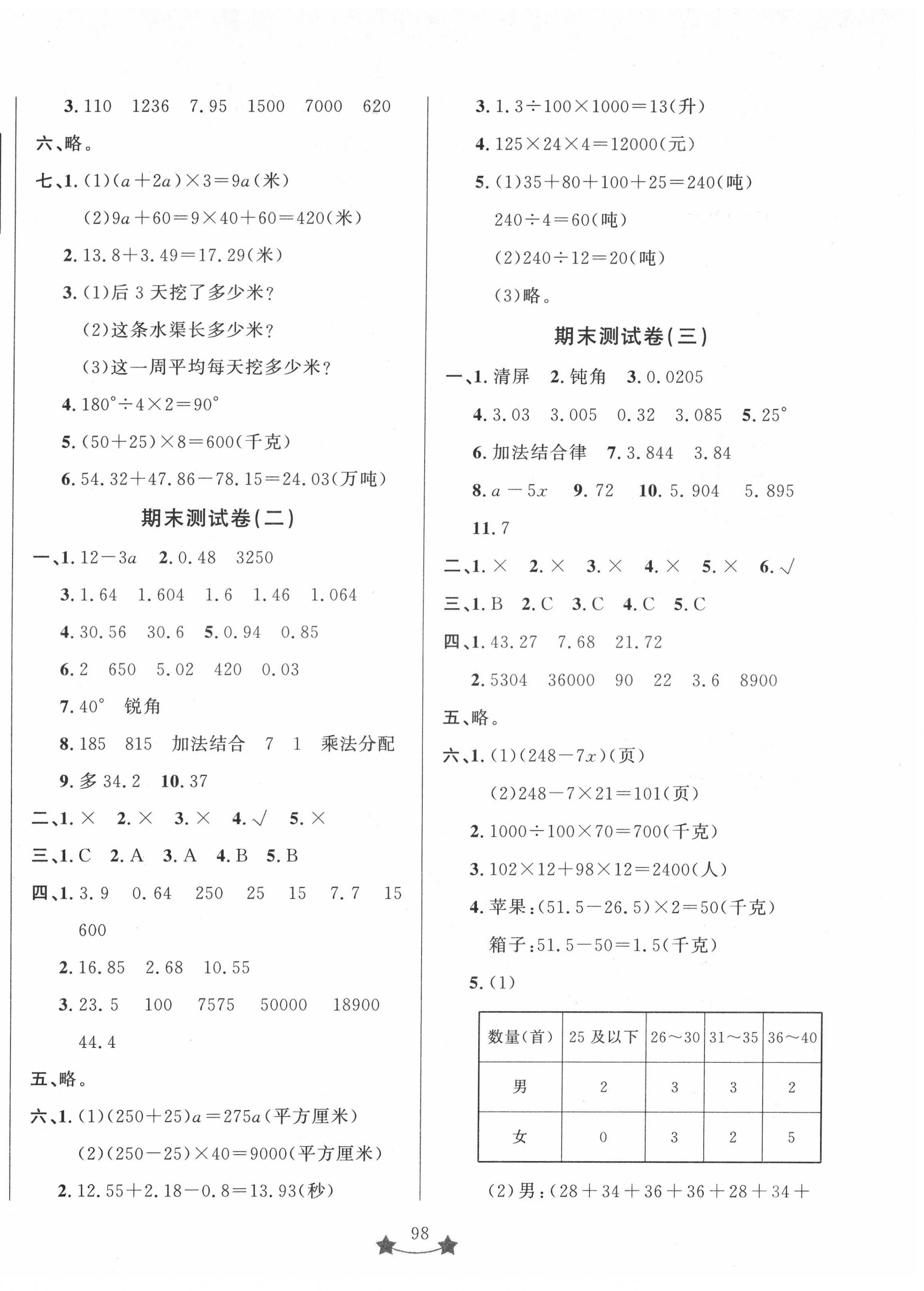 注:目前有些书本章节名称可能整理的还不是很完善,但都是按照顺序排列的,请同学们按照顺序仔细查找。练习册 2022年单元测试卷山东文艺出版社四年级数学下册青岛版 答案主要是用来给同学们做完题方便对答案用的,请勿直接抄袭。