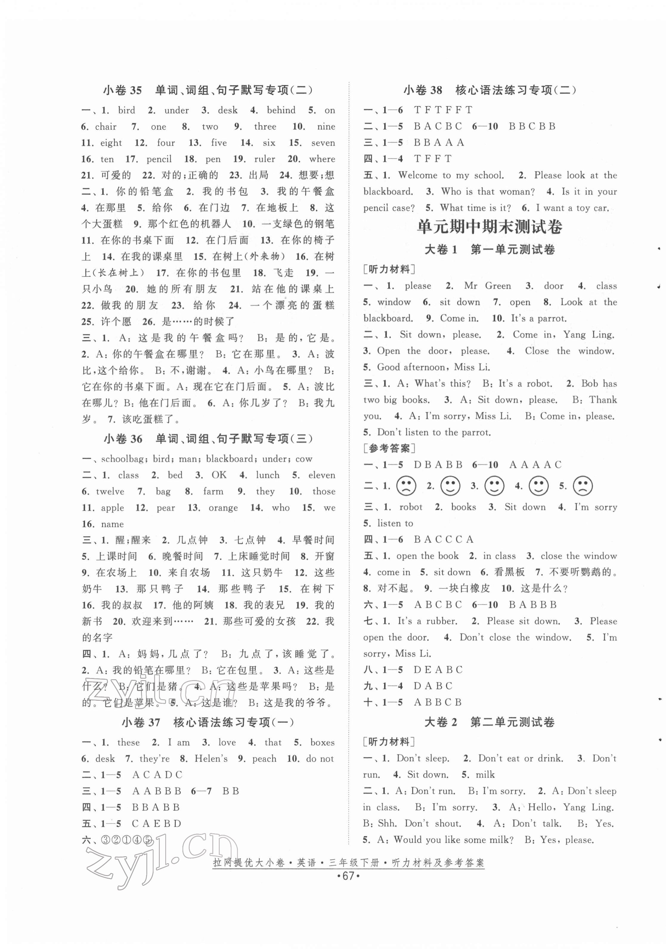 2022年拉网提优大小卷三年级英语下册译林版