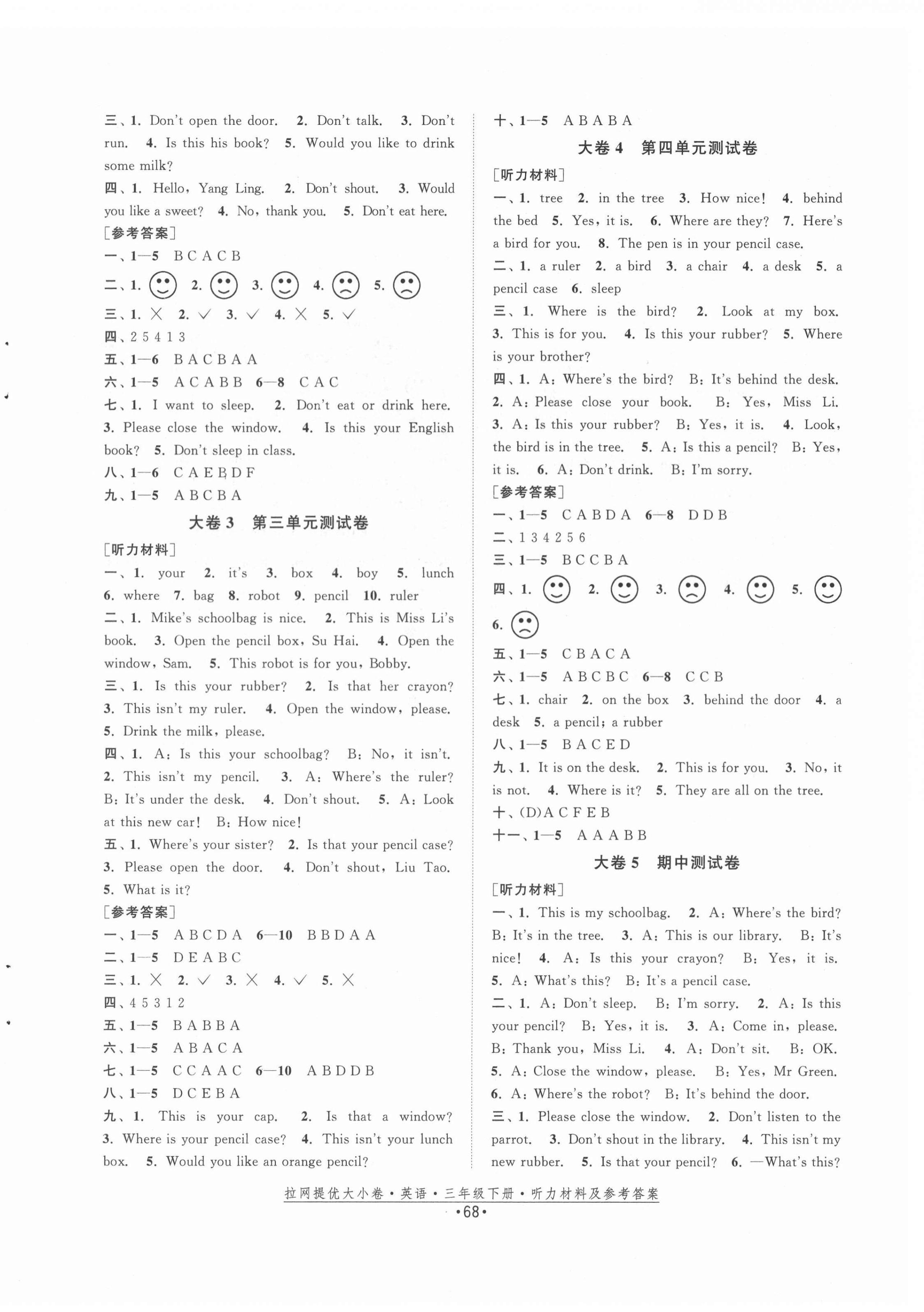 注:目前有些书本章节名称可能整理的还不是很完善,但都是按照顺序排列的,请同学们按照顺序仔细查找。练习册 2022年拉网提优大小卷三年级英语下册译林版 答案主要是用来给同学们做完题方便对答案用的,请勿直接抄袭。