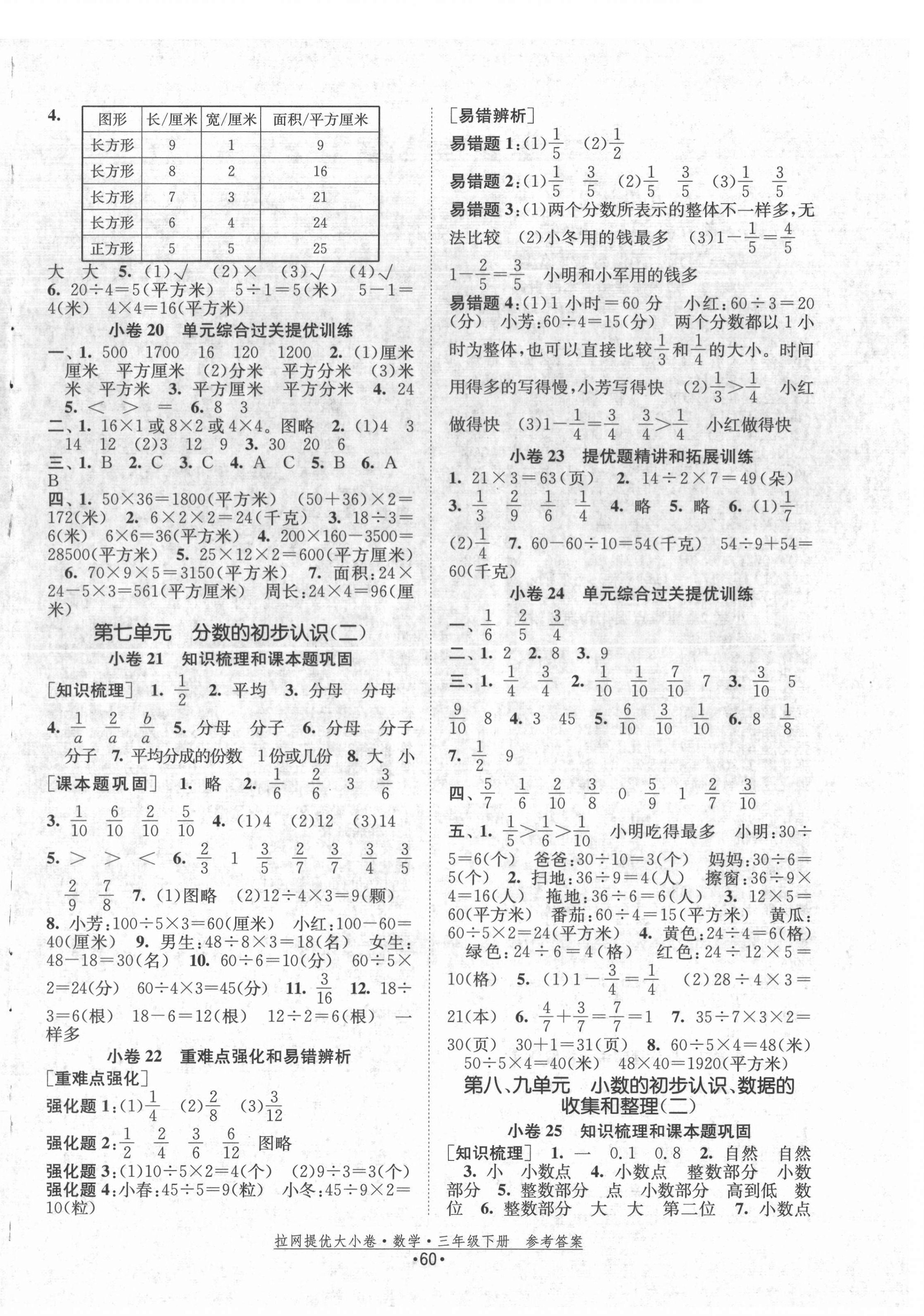 2022年拉网提优大小卷三年级数学下册苏教版