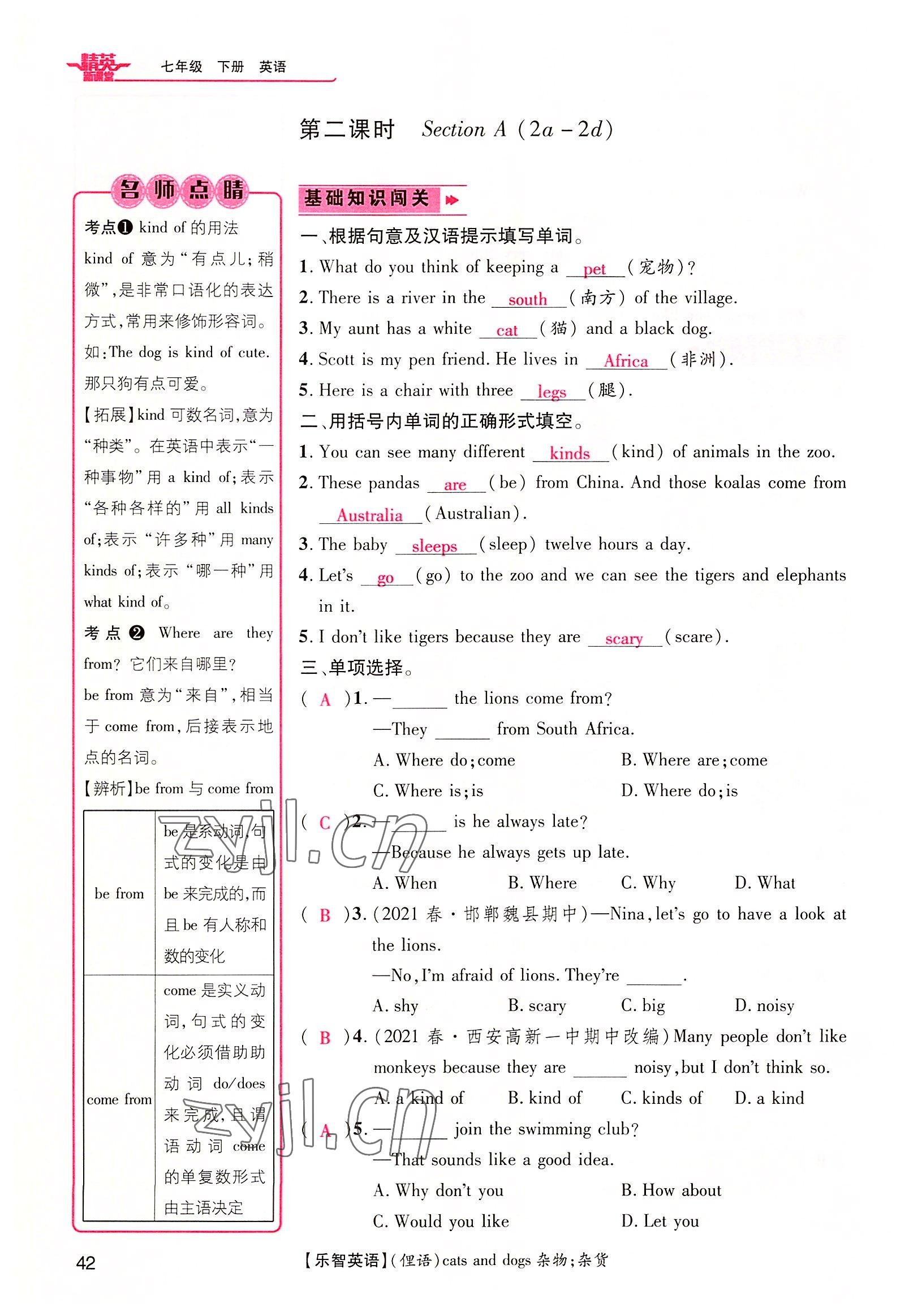 注:目前有些书本章节名称可能整理的还不是很完善,但都是按照顺序排列的,请同学们按照顺序仔细查找。练习册 2022年精英新课堂七年级英语下册人教版黄冈孝感咸宁专版 答案主要是用来给同学们做完题方便对答案用的,请勿直接抄袭。