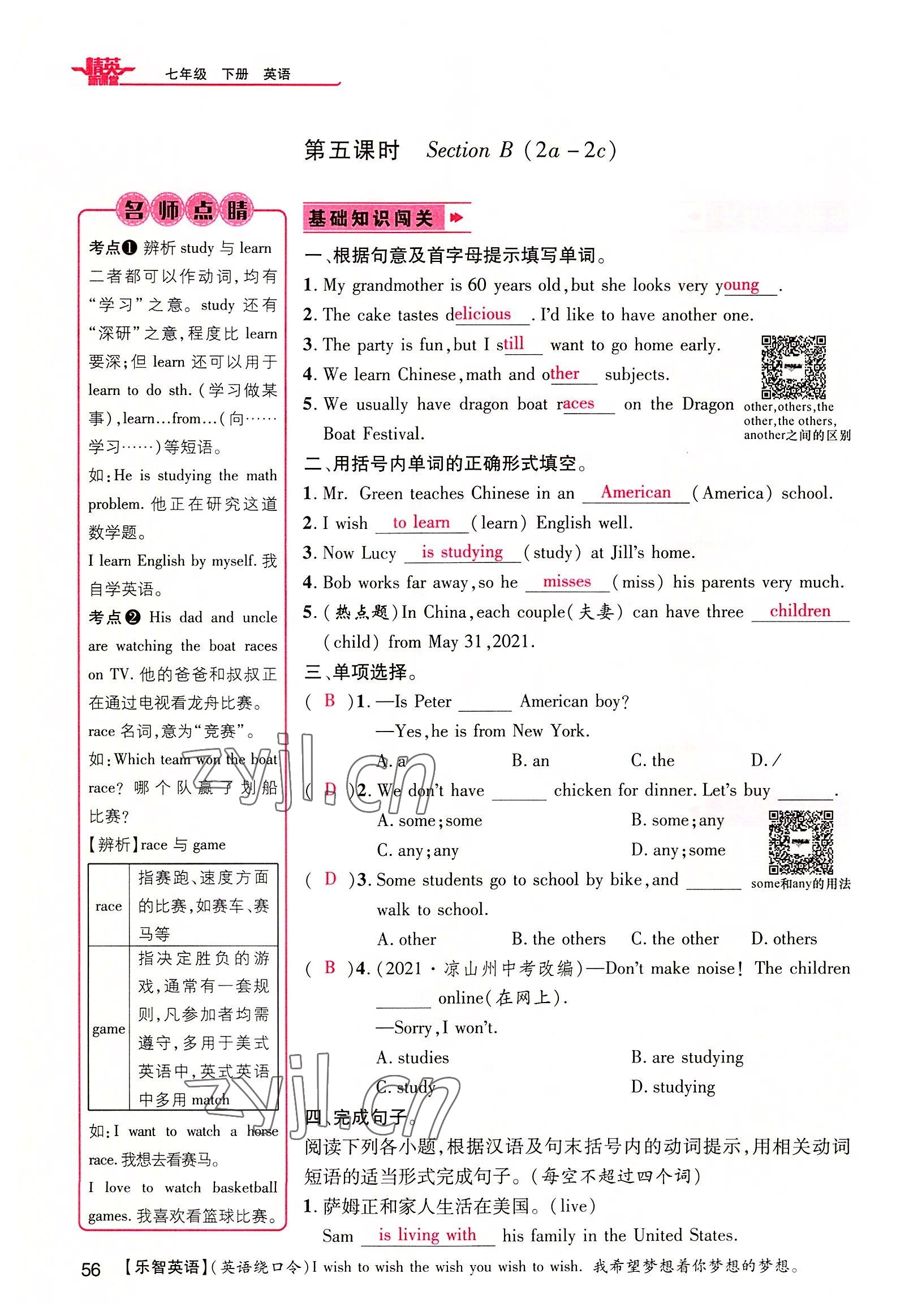 注:目前有些书本章节名称可能整理的还不是很完善,但都是按照顺序排列的,请同学们按照顺序仔细查找。练习册 2022年精英新课堂七年级英语下册人教版黄冈孝感咸宁专版 答案主要是用来给同学们做完题方便对答案用的,请勿直接抄袭。