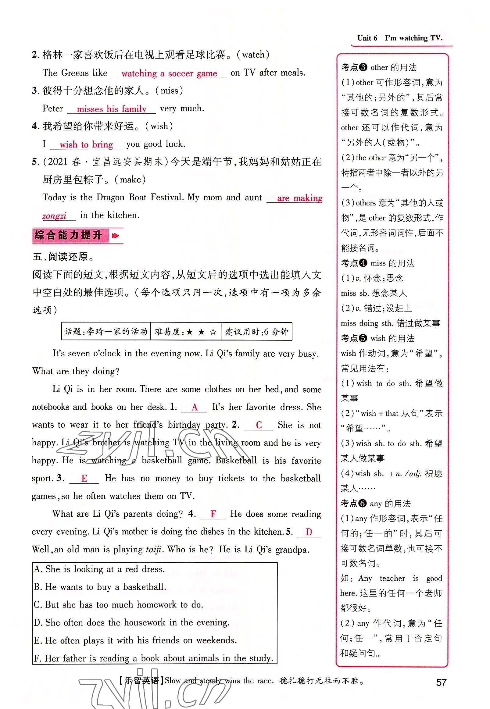 注:目前有些书本章节名称可能整理的还不是很完善,但都是按照顺序排列的,请同学们按照顺序仔细查找。练习册 2022年精英新课堂七年级英语下册人教版黄冈孝感咸宁专版 答案主要是用来给同学们做完题方便对答案用的,请勿直接抄袭。